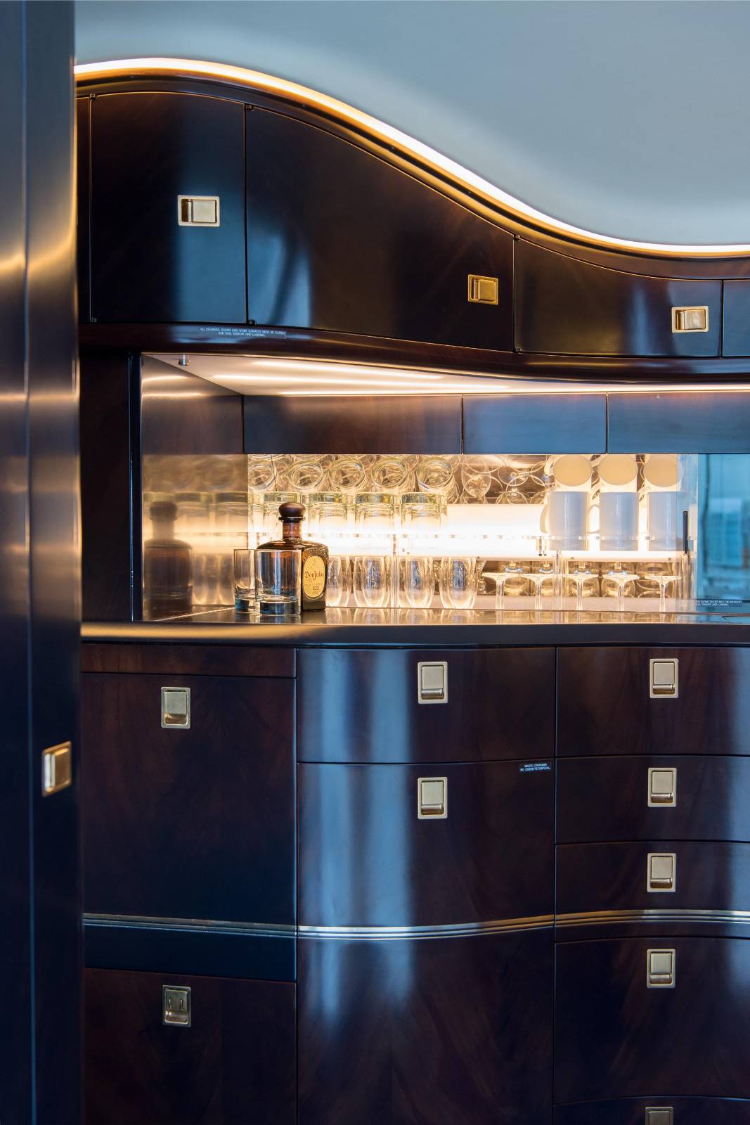 The ability to apply laminate to interior cabinetry, offers an unparalleled variety of finishes! This product looks completely natural and will add so much value to your interior! What we can laminate typically includes the galley, bulkheads, drink rails, and tray tables. We offer a large range of finishes, such as timber grains, stones, leathers and textiles, all which come in a vast range of colors and styles.