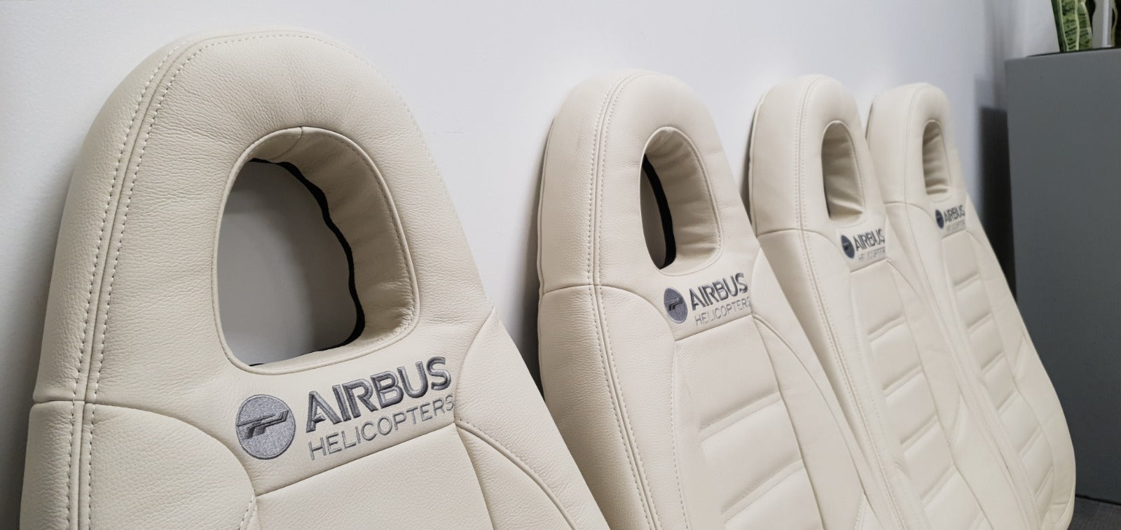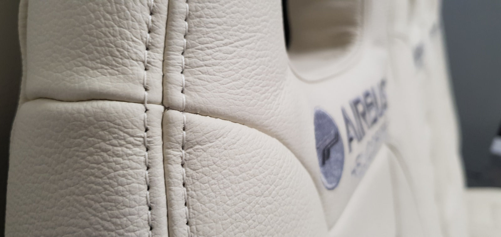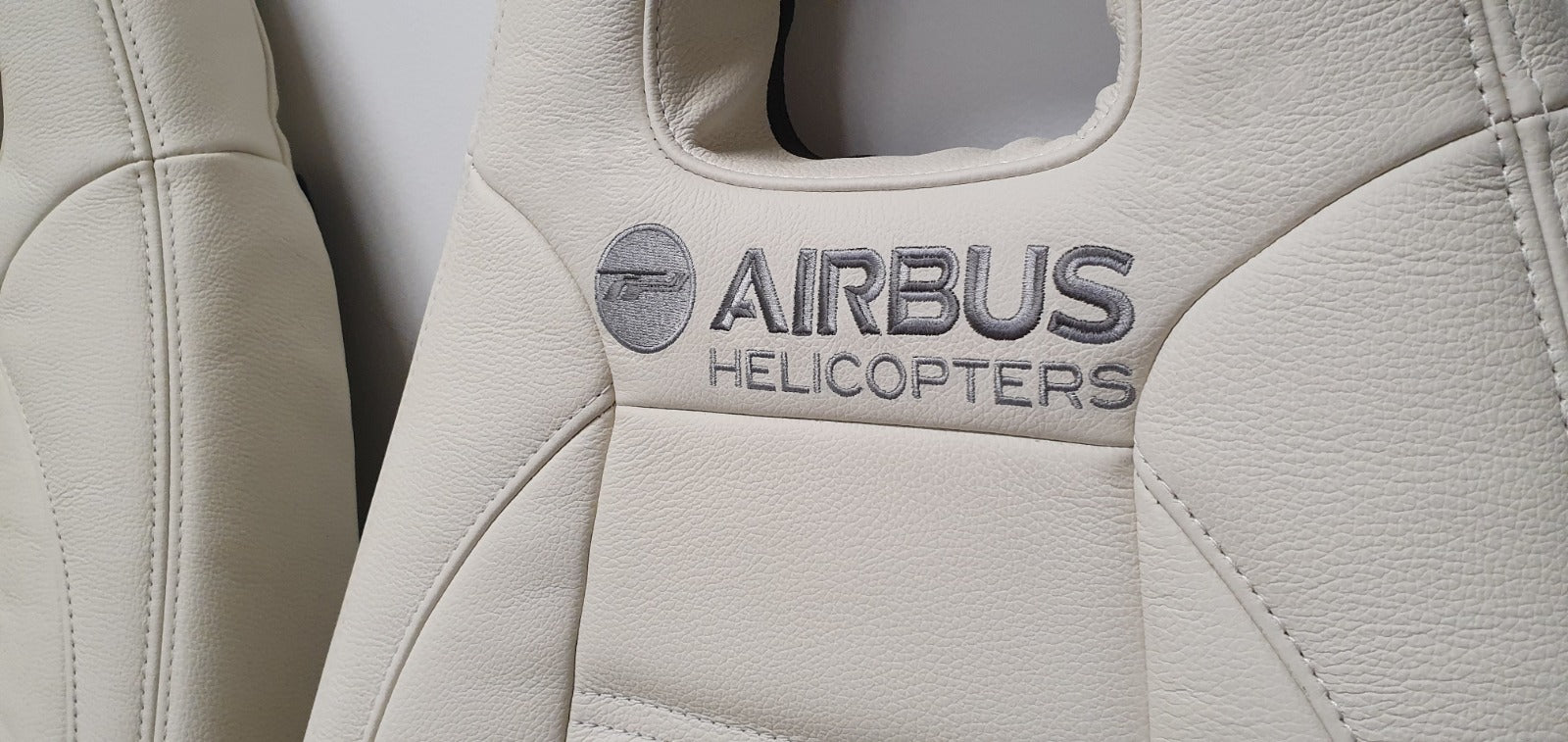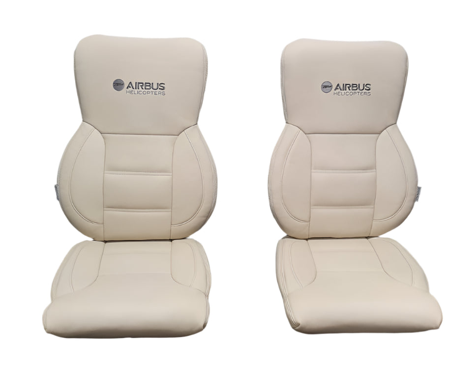 Each seat was outfitted with White Leather covers, and the Airbus logo was embroidered onto each headrest, providing a professional and cohesive appearance.