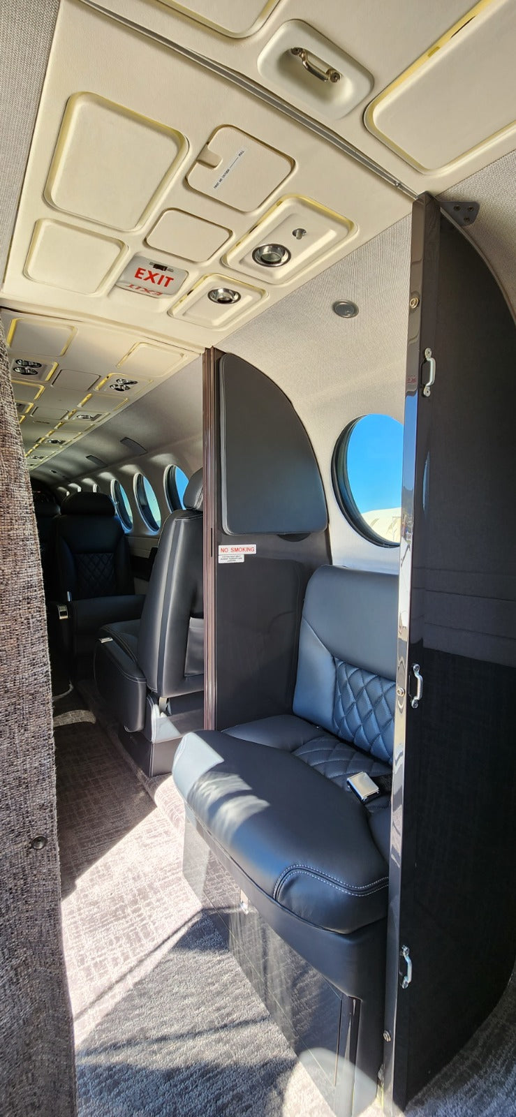 The refurbished interior of this King Air 350 delivers a seamless blend of luxury, performance, and function. Every elementβfrom the Italian leather and reconditioned wood veneer to the refined stitching and brushed chrome detailsβreflects Generation Globalβs commitment to precision craftsmanship. This aircraft is now visually and tactilely elevated, ready to serve as a high-performance executive aircraft with a cabin that rivals the best in the sky.