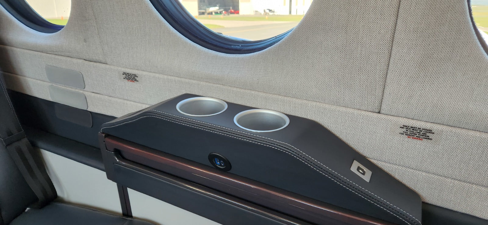Tray tables now include integrated USB charging ports discreetly placed beneath the cup holders
