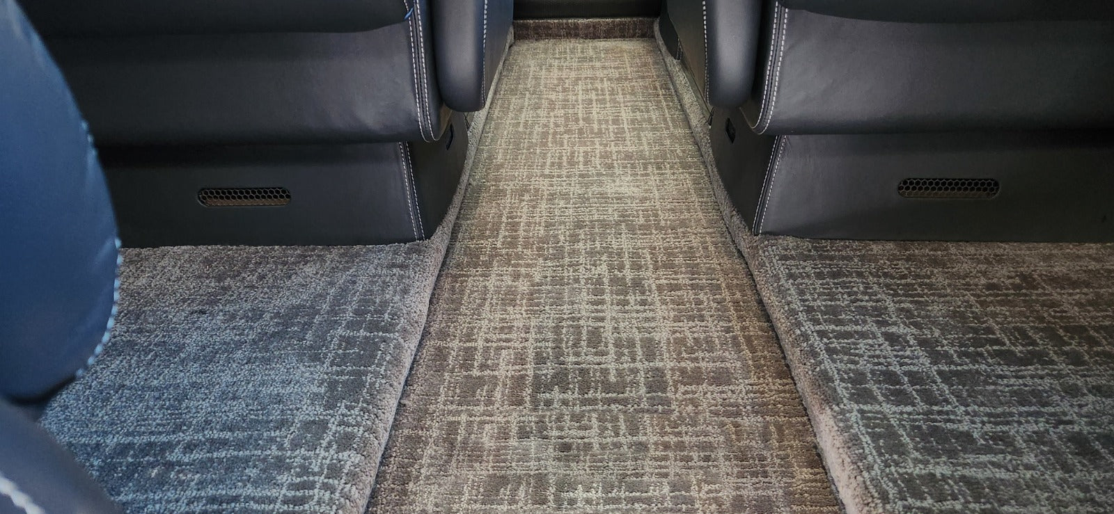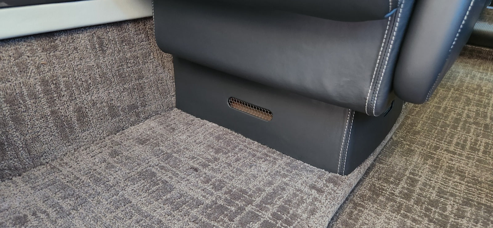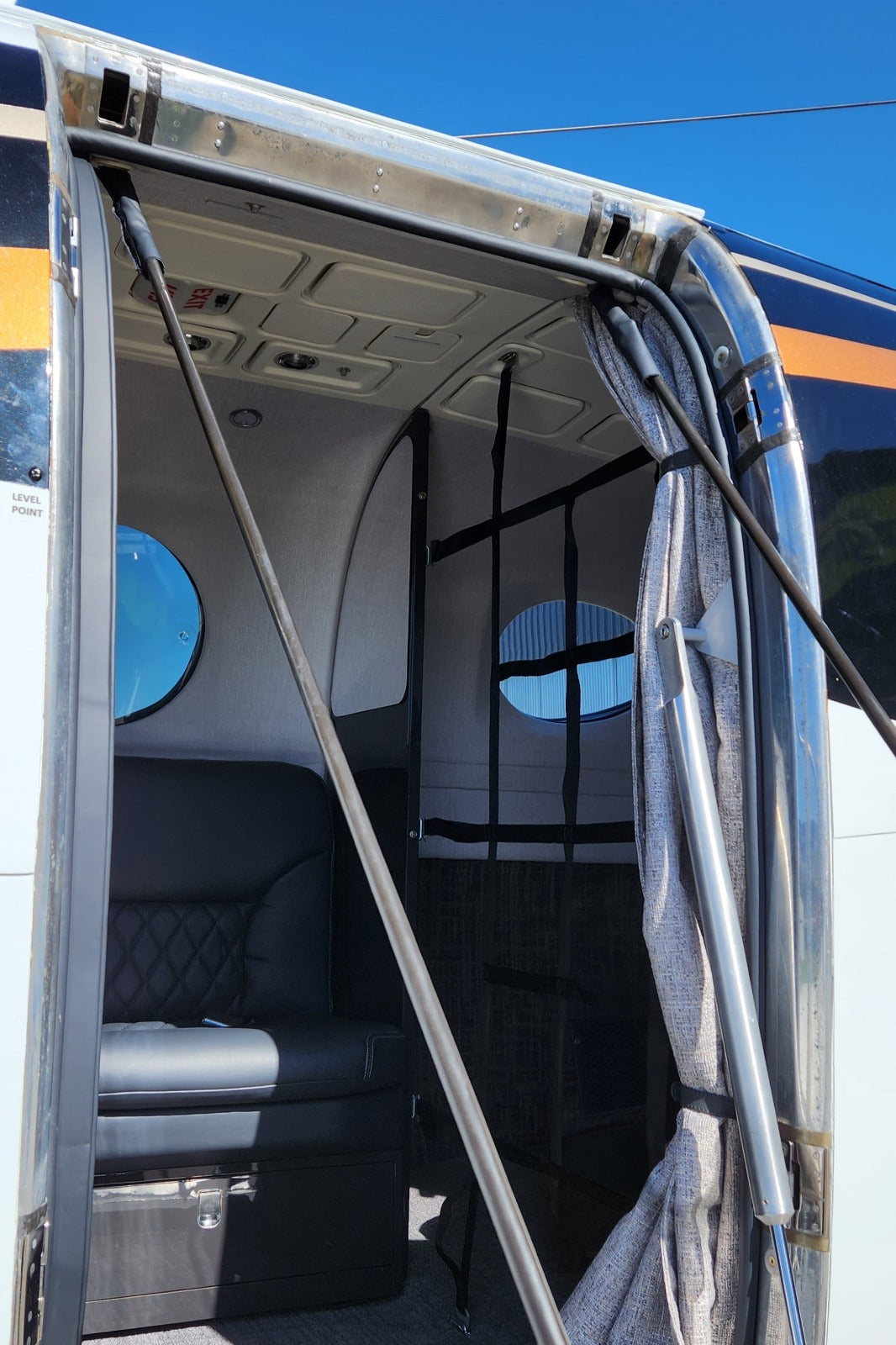 Sidewalls: Trimmed in the same silver textured fabric used in the main cabin for design continuity