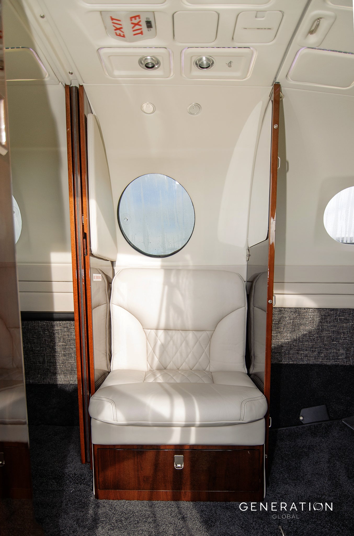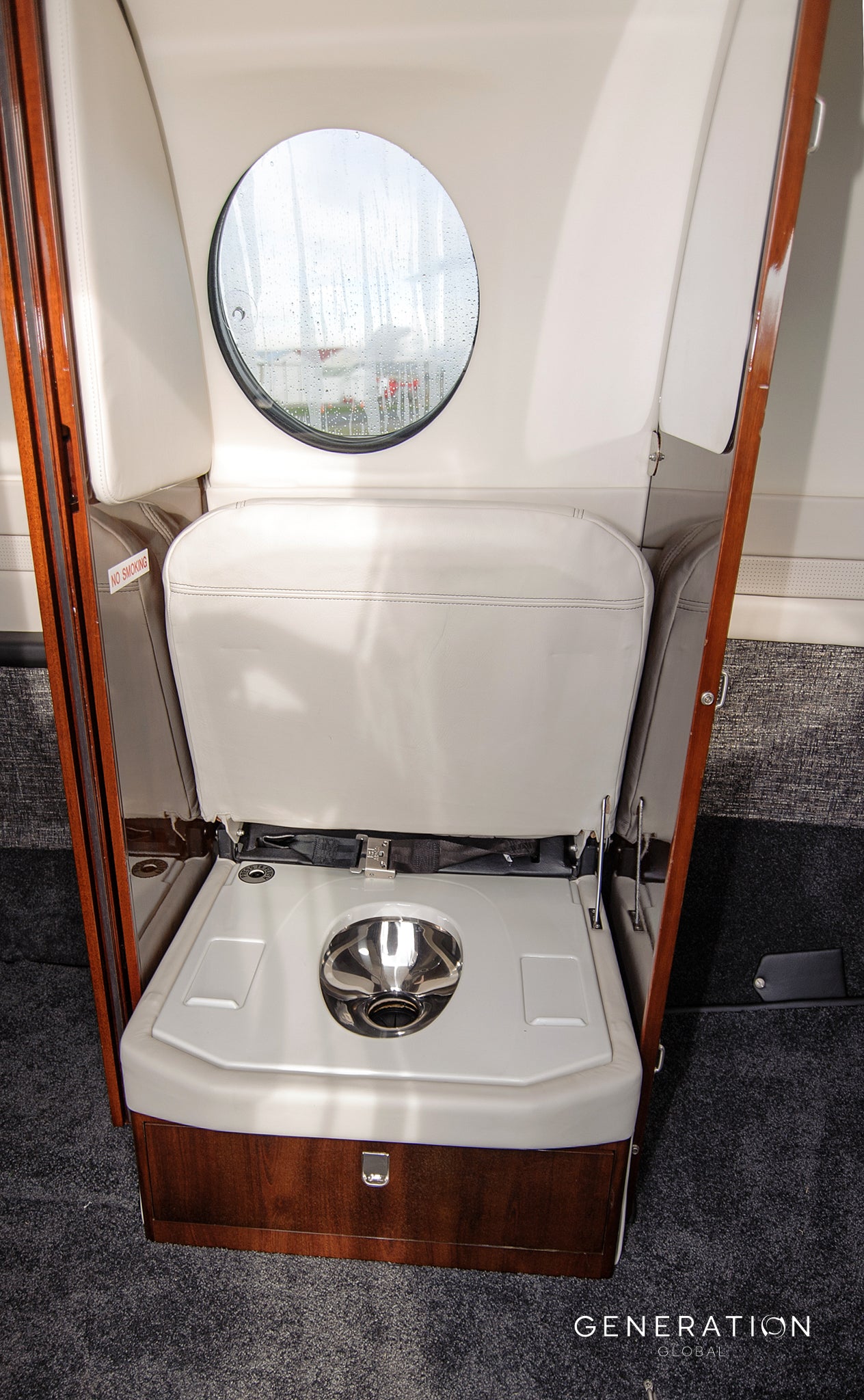 Our team completed a full interior refurbishment of this aircraft, and the results are nothing short of impressive. We meticulously refurbished all elements of the interior, including the flooring, sidewalls, ceiling, woodwork, fold-out tables, seats, toilet seats, and pilot seats. The interior now features a lovely cream color scheme that brightens the space, creating an inviting atmosphere. The seats have been upgraded with diamond quilting on the center inserts, adding a touch of class that is sure to impress. Additionally, the lower sidewalls are covered in a specially selected fabric that helps to relax the space, making every journey a comfortable and enjoyable experience.