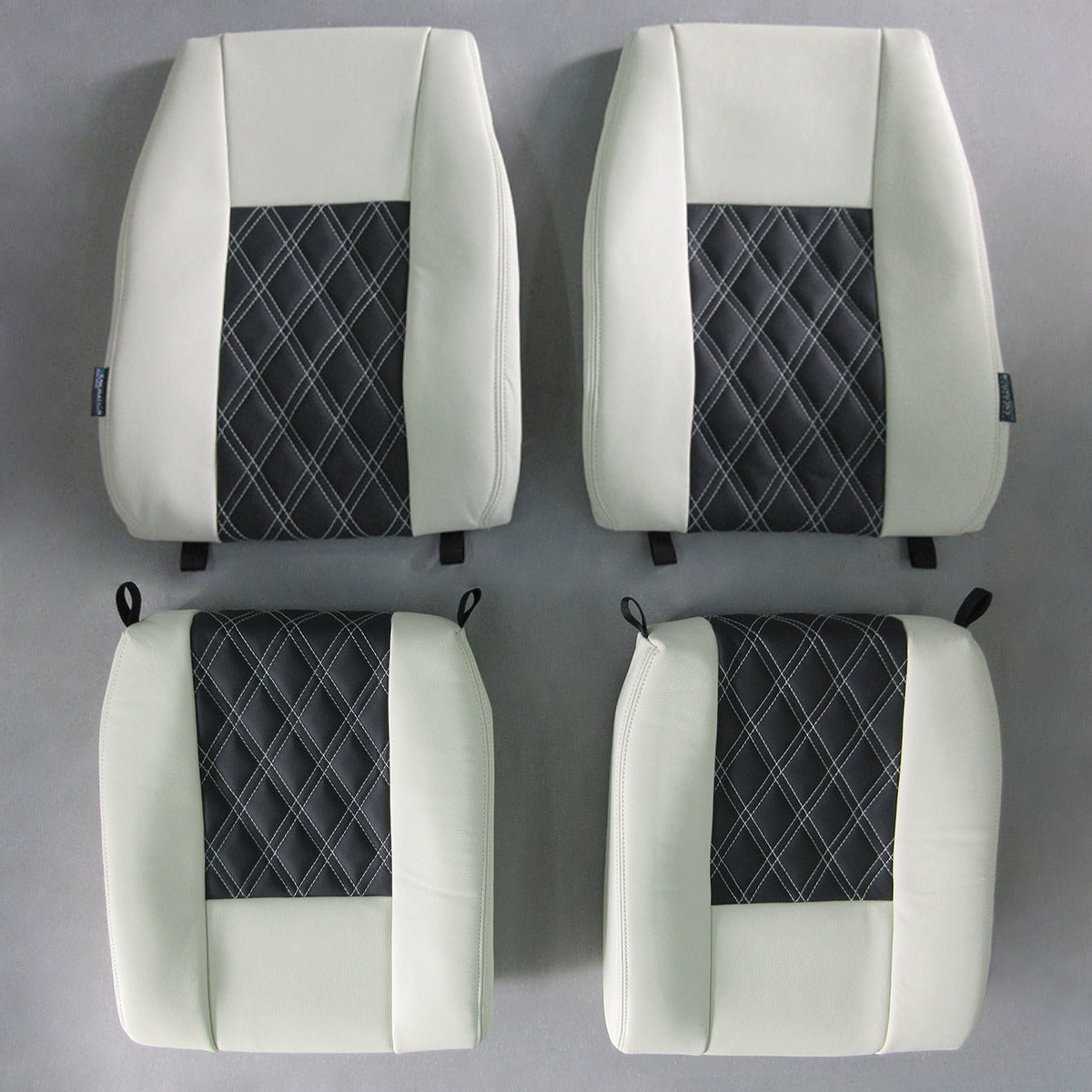 Black leather (ADI-1091) seat inserts with white double diamond stitching (SA005)