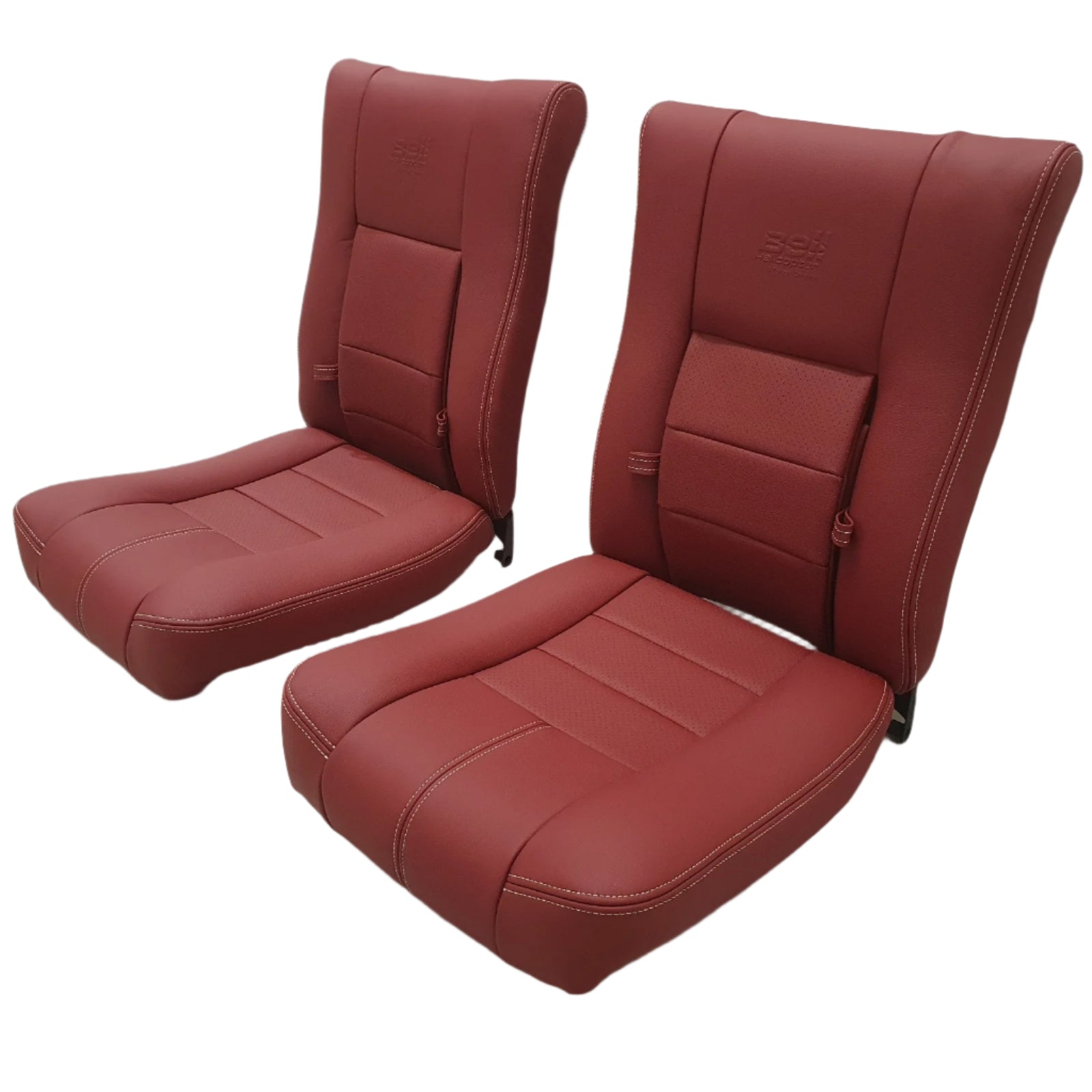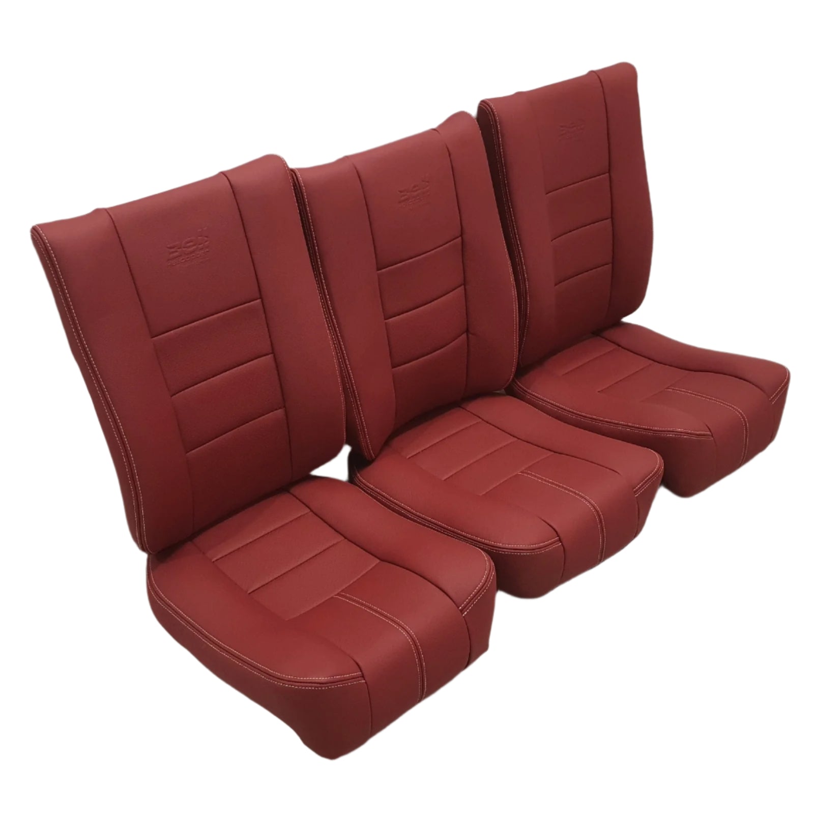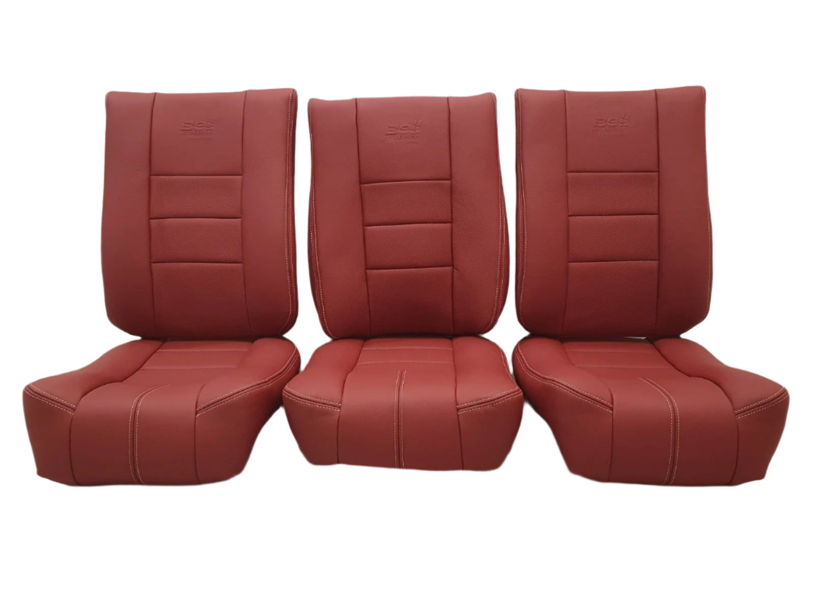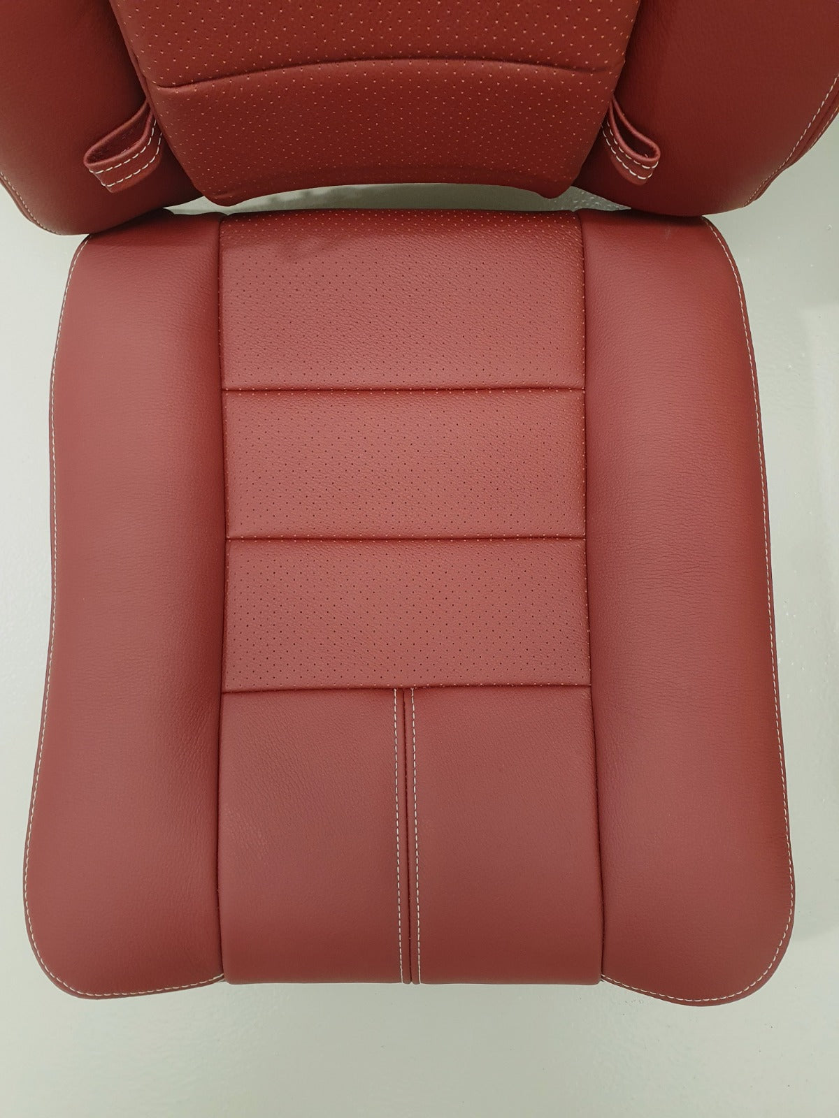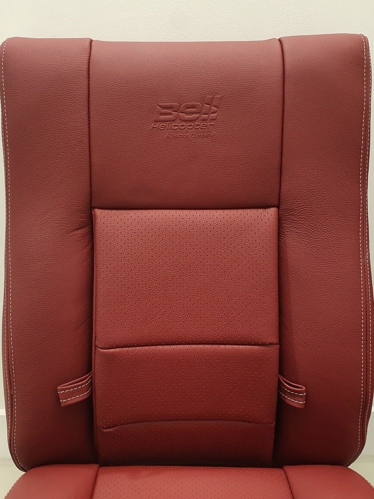 The seats in this Bell 206 were upholstered in Dark Red leather (ADI-3021), carefully selected to match the aircraftβs stunning red livery. To add a touch of sophistication, we used beige stitching throughout the seats, providing a contrast that enhances the leather's rich tone. This color combination not only complemented the helicopterβs exterior but also created a stylish and professional interior.