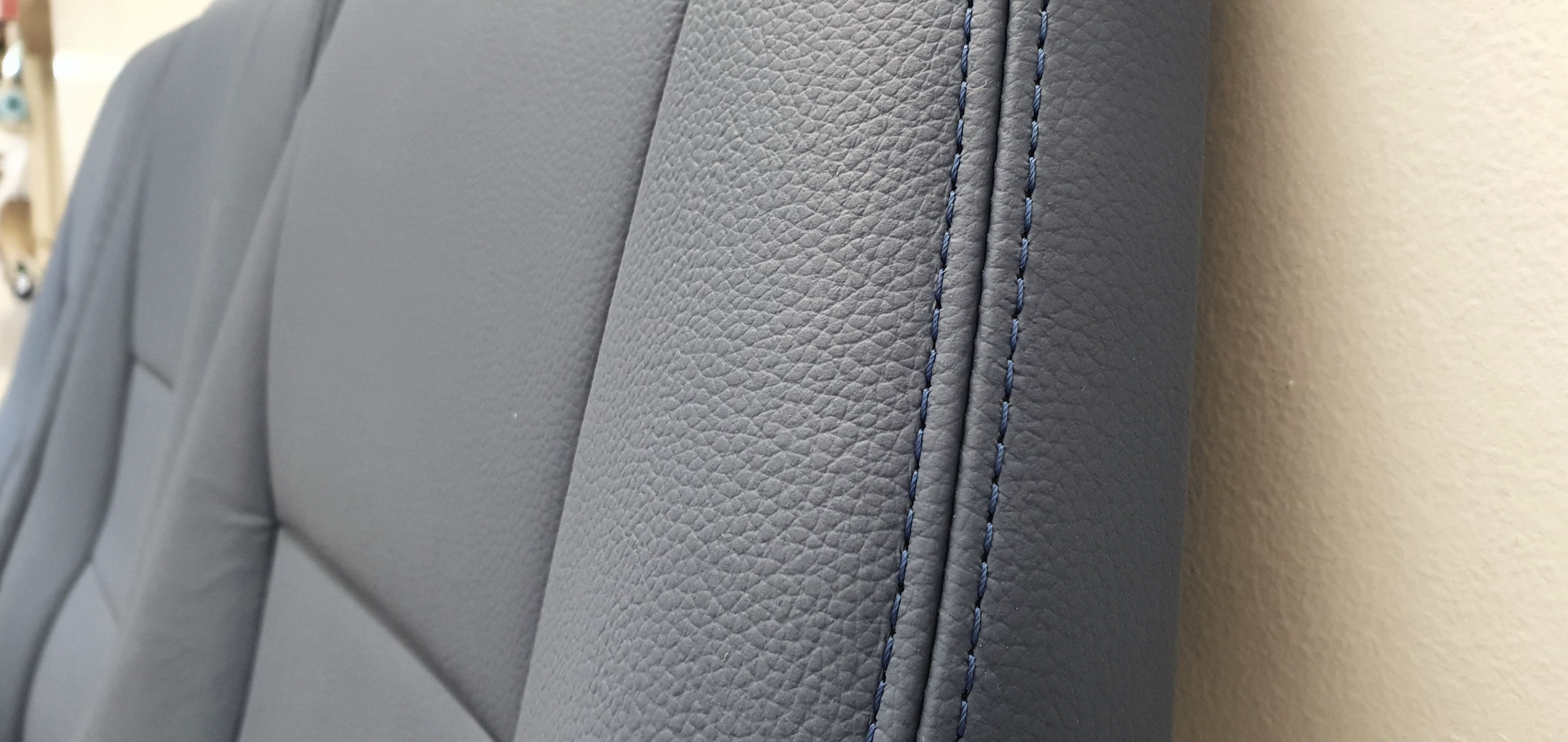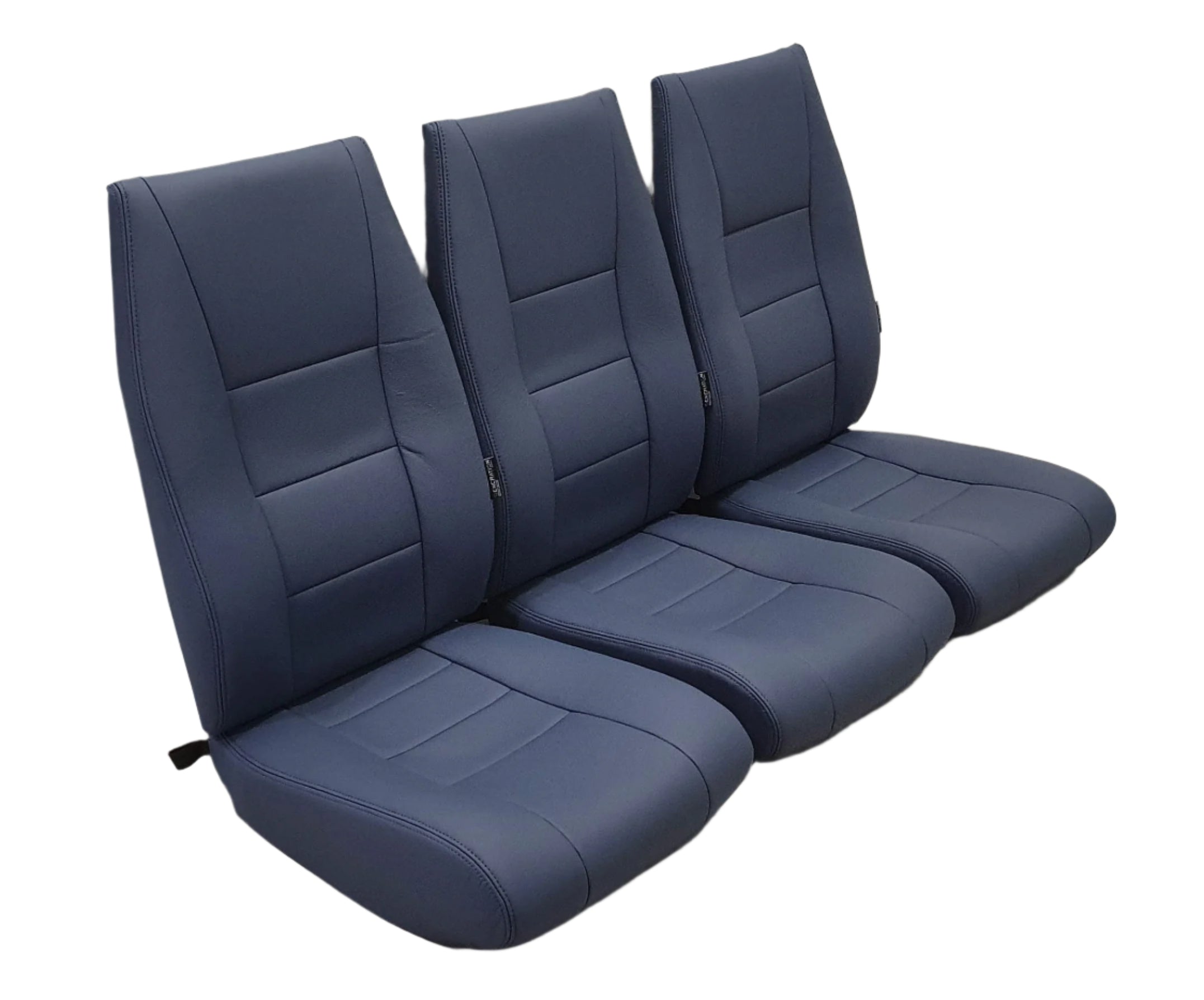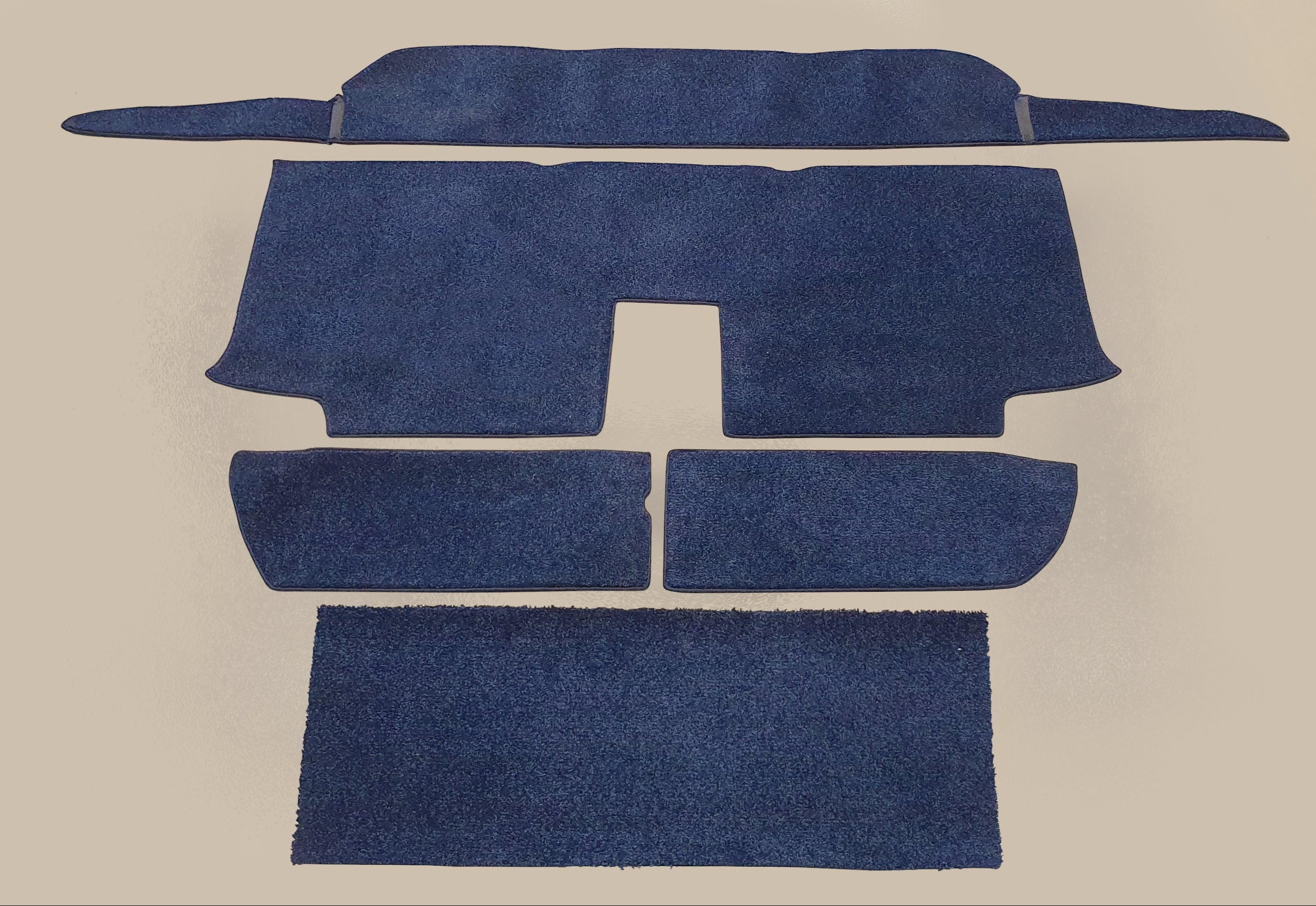 The seats were designed in the GEN I style, with seat covers made from Royal Blue (ADI-2031) aviation leather. The seats featured standard flat inserts, and all stitching was completed in matching Royal Blue thread for a seamless look. The rear carpet sections were manufactured from Blue Shadow plush pile carpet, with the edges bound in matching mesh binding, providing a clean, professional finish to the interior.