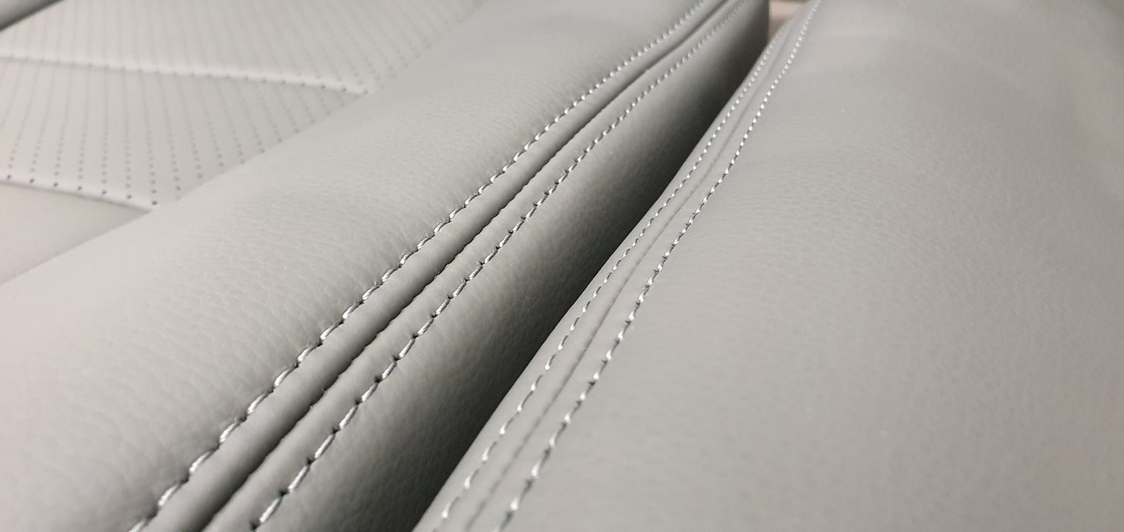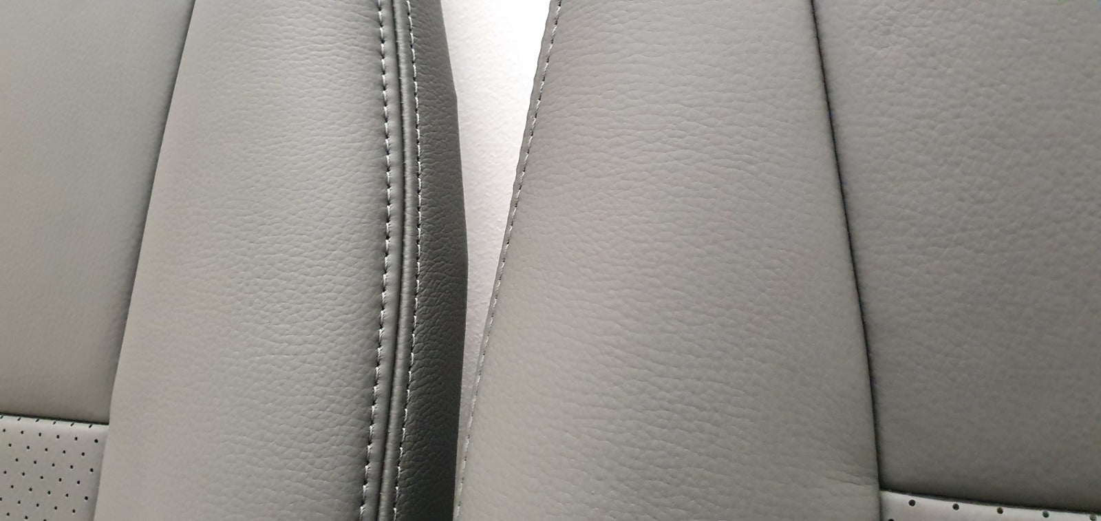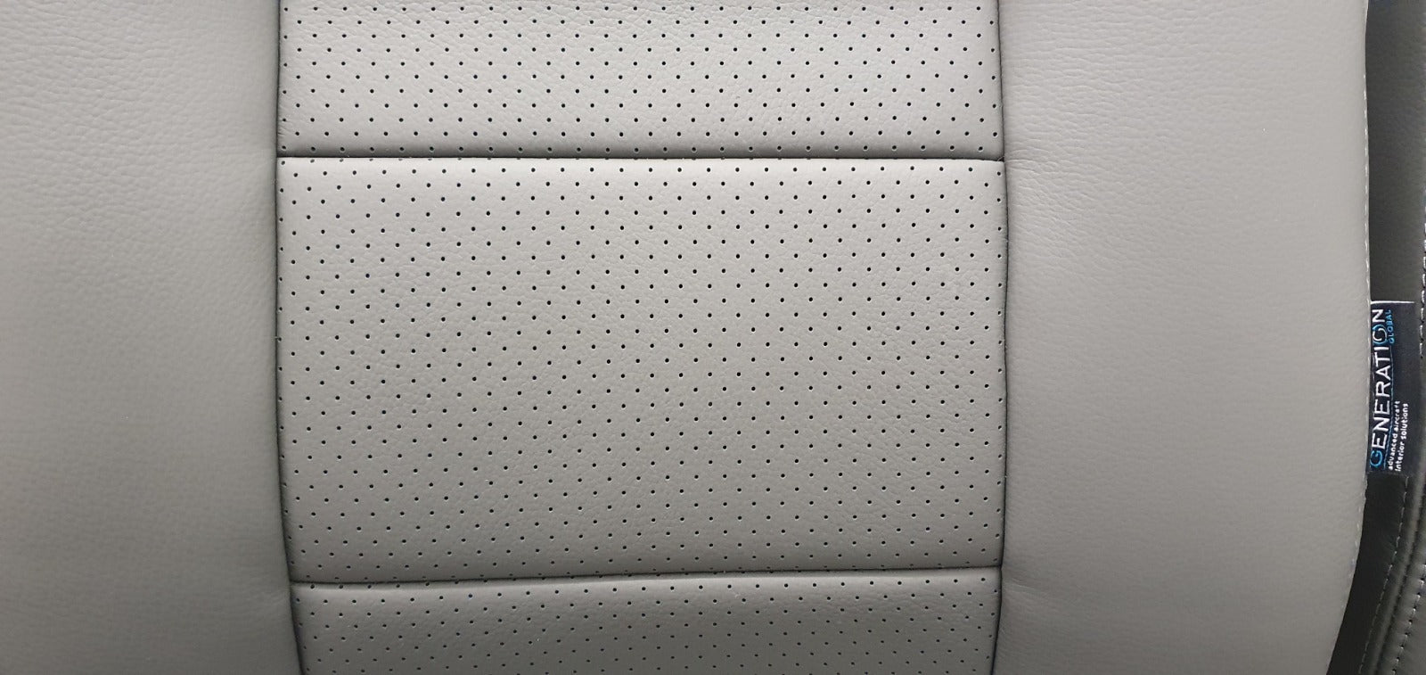 Perforated leather inserts in the seat center, promoting breathability and comfort for passengers