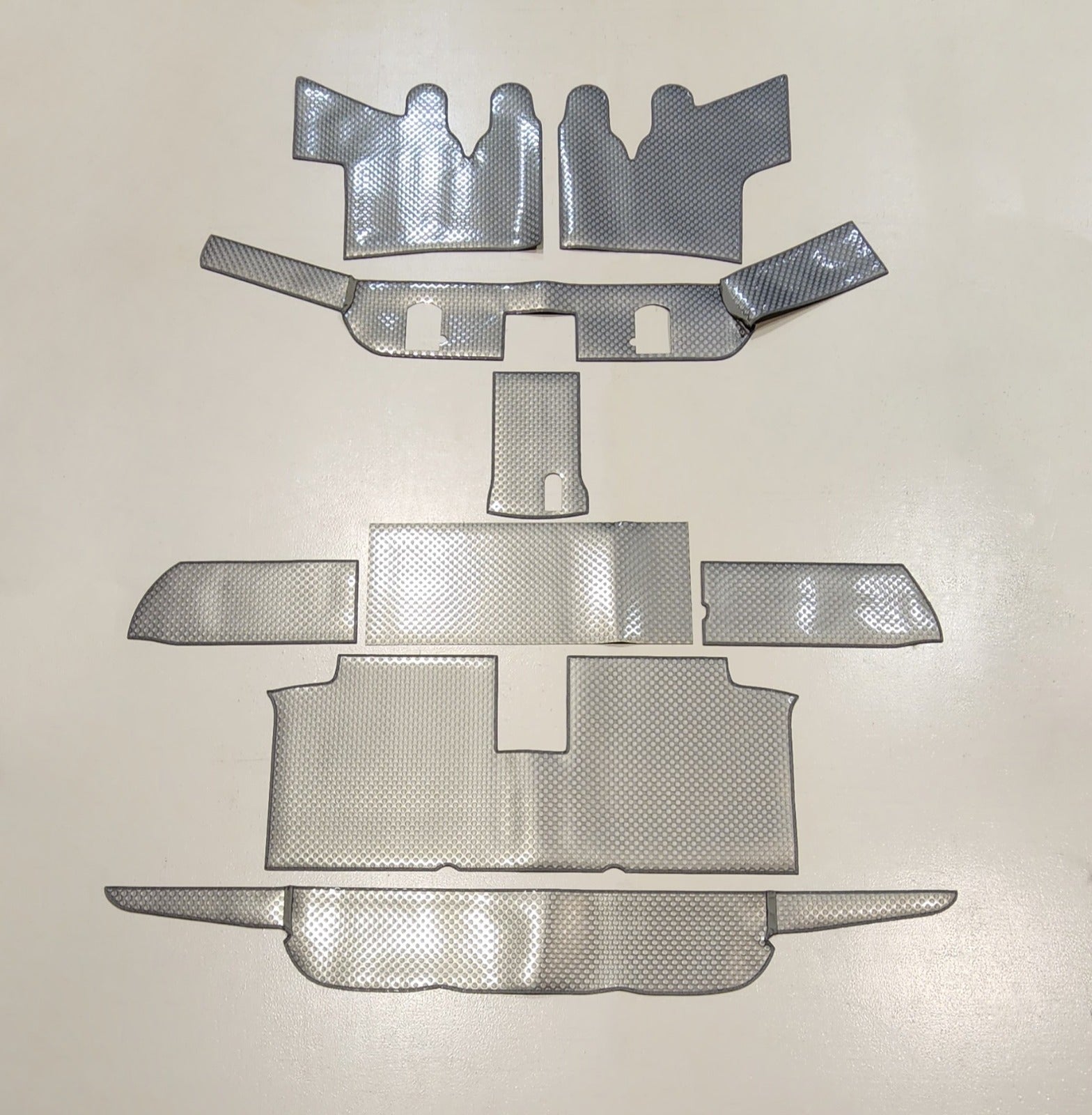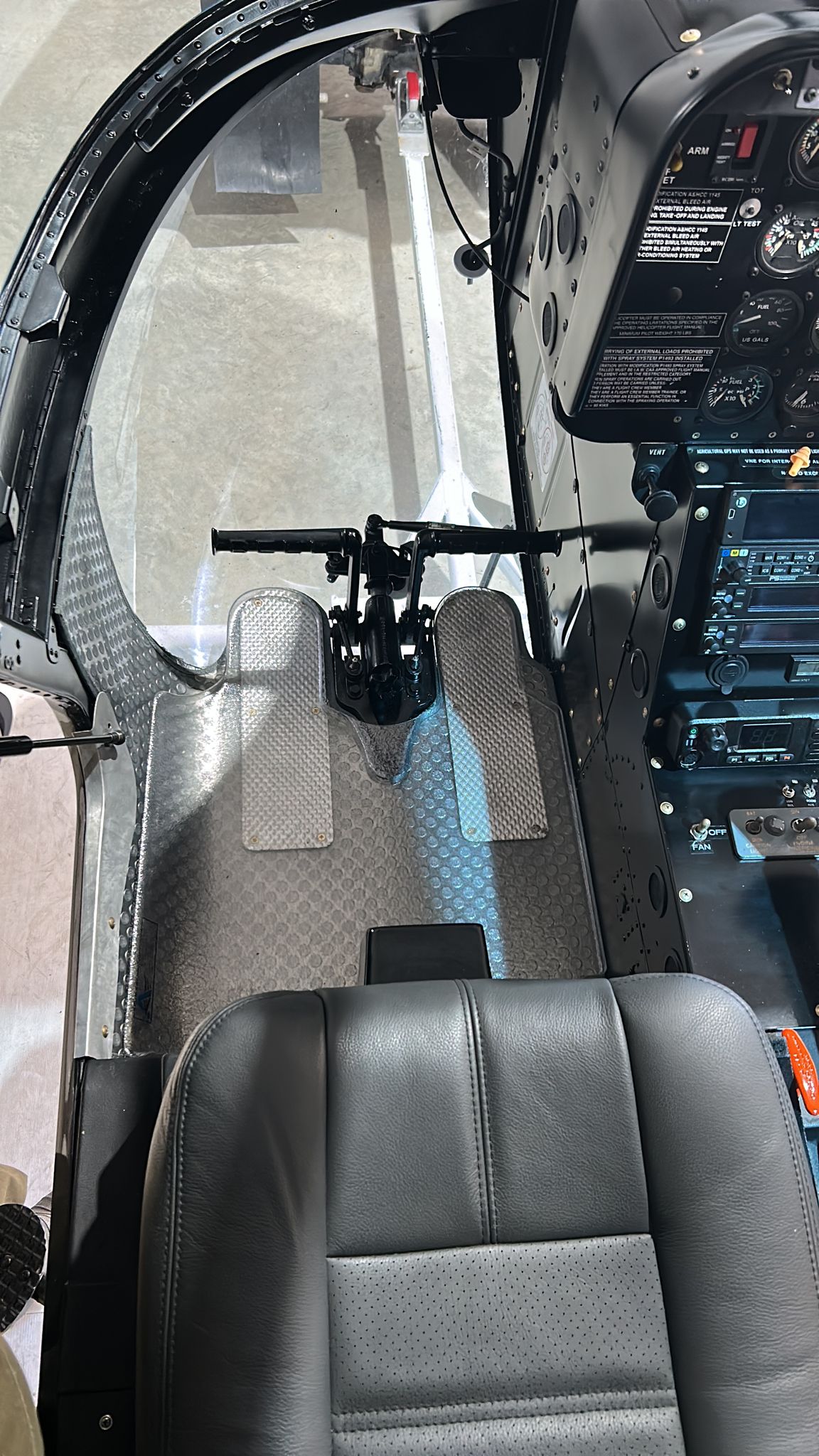 The flooring in the helicopter is made from heavy-duty vinyl flooring in Genflor graphite, providing durability and a modern, sleek look. The flooring is finished with matching mesh binding around the edges.