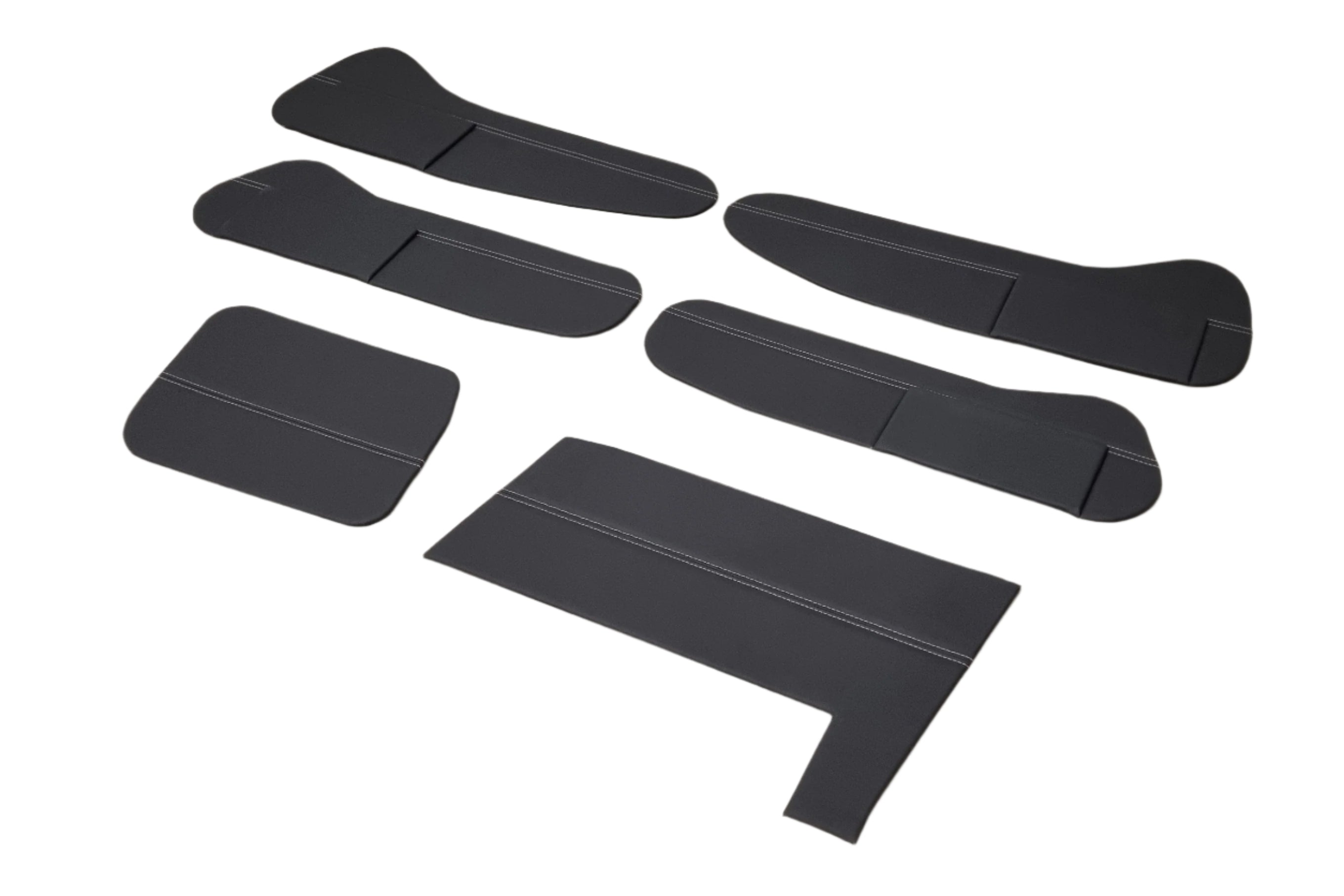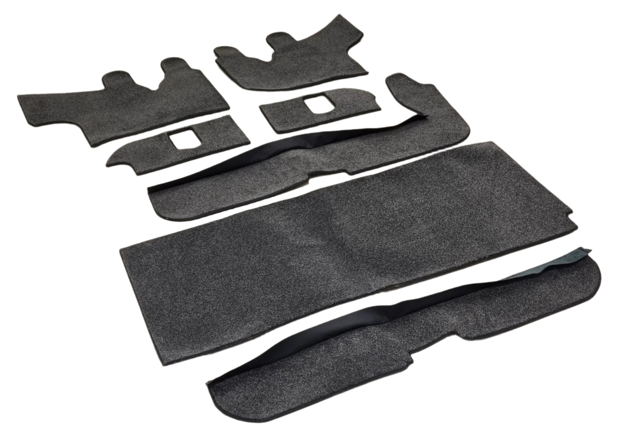 The floor coverings are made from Zimmer (WN-120) cut-pile carpet, with the edges finished with matching mesh binding. These floor coverings are secured in place using the Velcro attachments provided in the kit. The interior kit was specifically designed for a Long Ranger model that does not have an interior plastic trim kit.