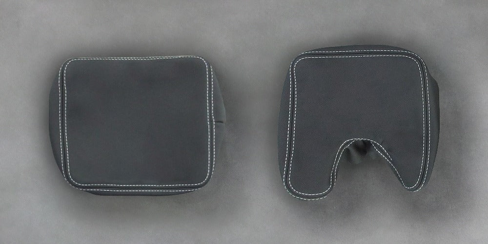 The headrests, including those between the crew seats and aft-facing passenger seats, were upholstered in lead grey leather (ADI-1111) and stitched with titanium grey double stitching, ensuring the headrests blend seamlessly with the rest of the interior. -