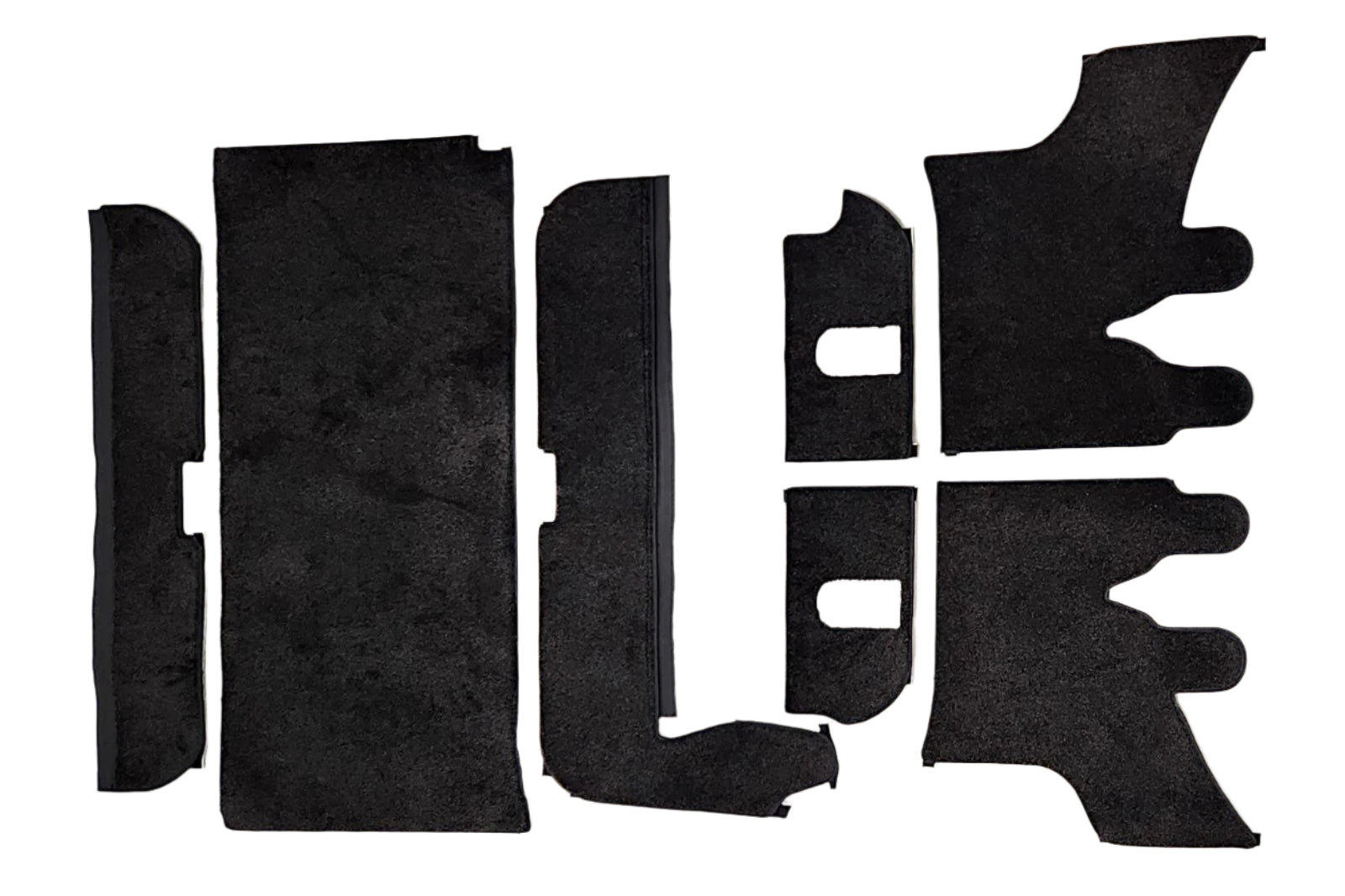 The flooring was manufactured from durable black city carpet, with additional sections included to cover areas beneath the seats.