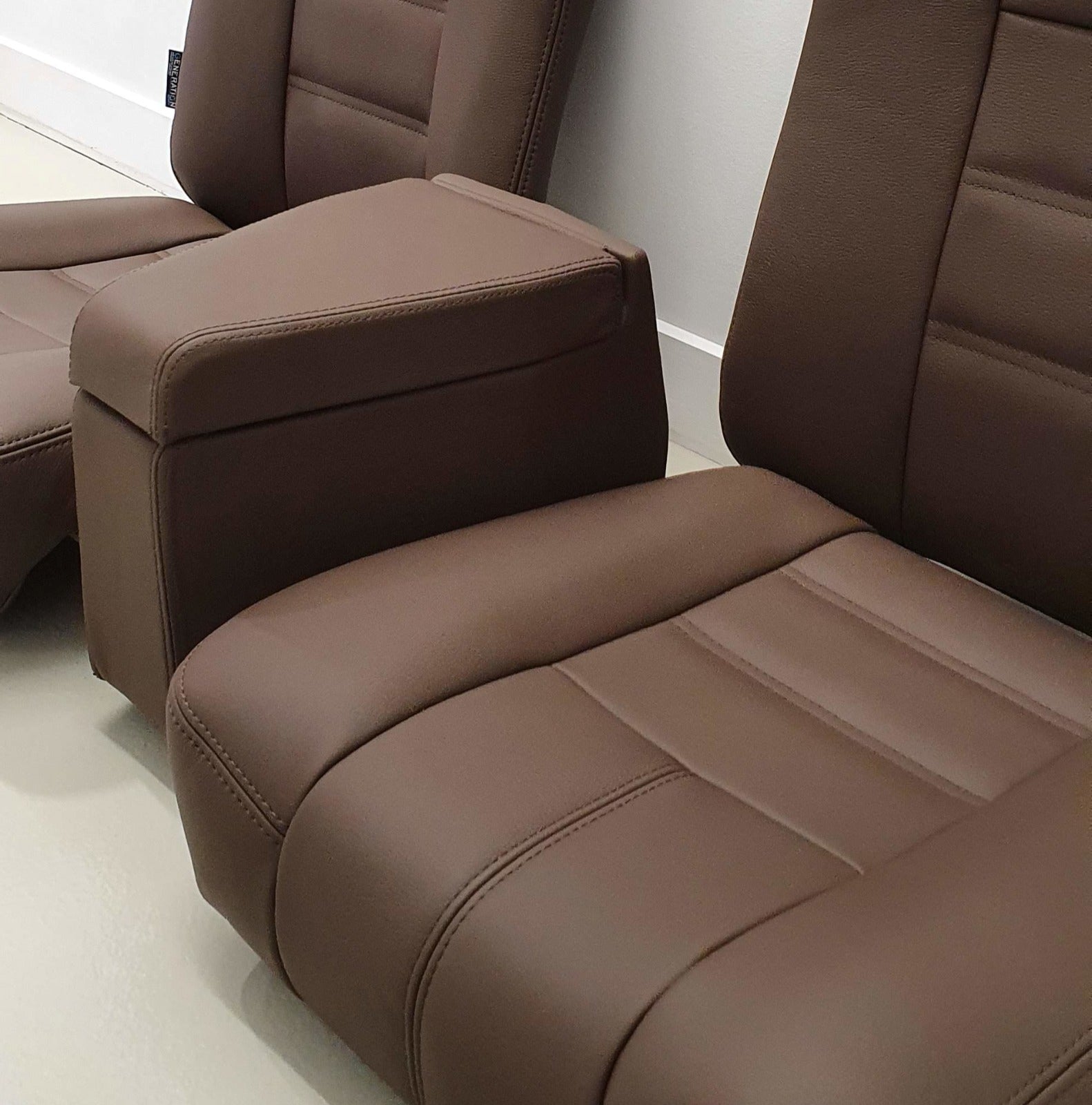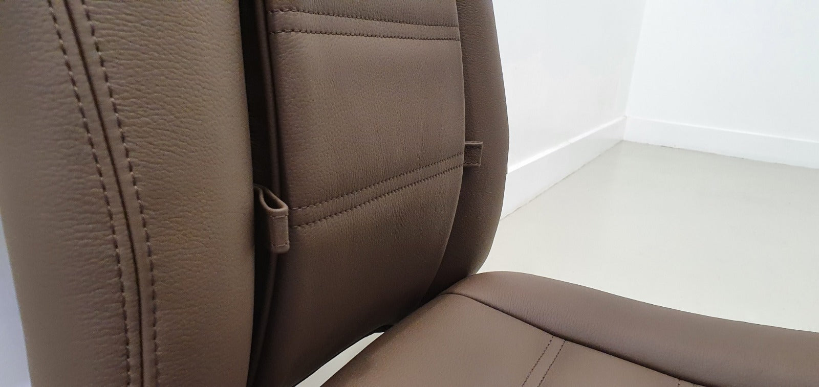 For each of these seats, we used smooth chocolate leather (ADI-4181) paired with matching stitching to achieve a rich, elegant finish.