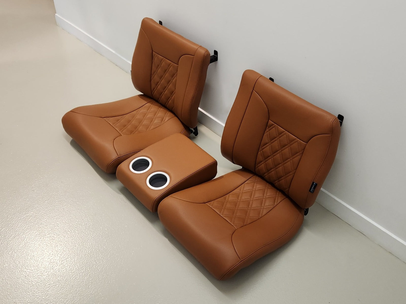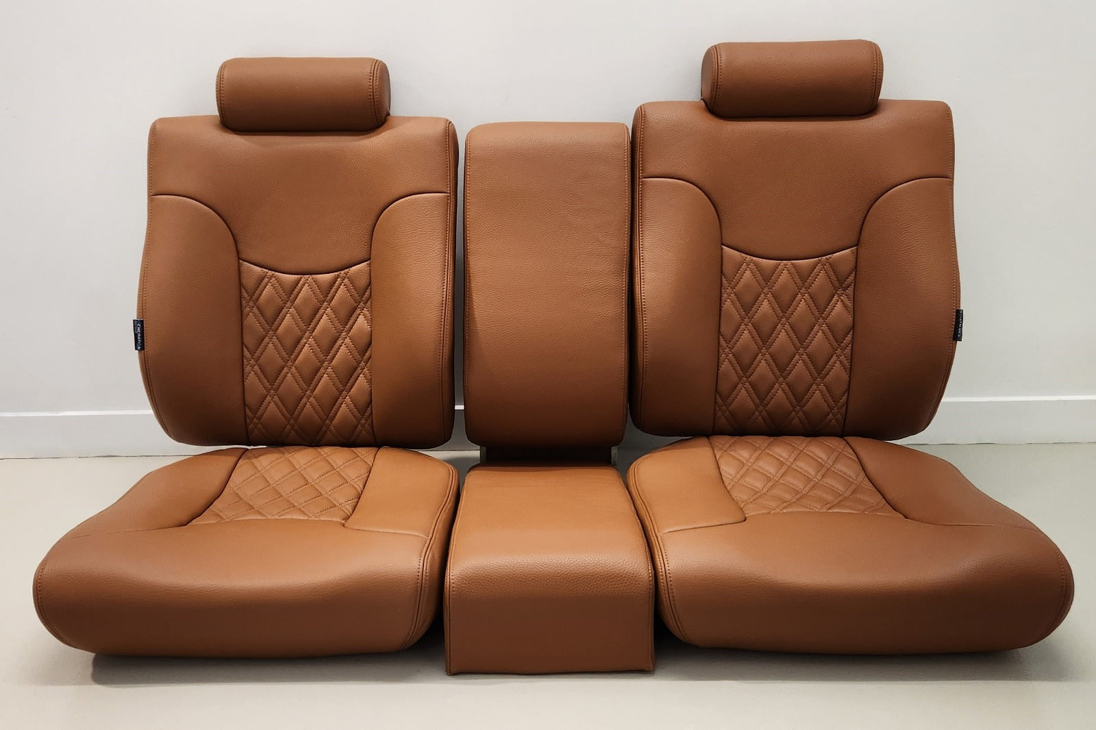 Design Features: The seat covers are stitched with decorative double stitching along the outer seams in a matching thread. The center inserts of the seats feature a double diamond quilting pattern, adding an elegant touch to the upholstery.