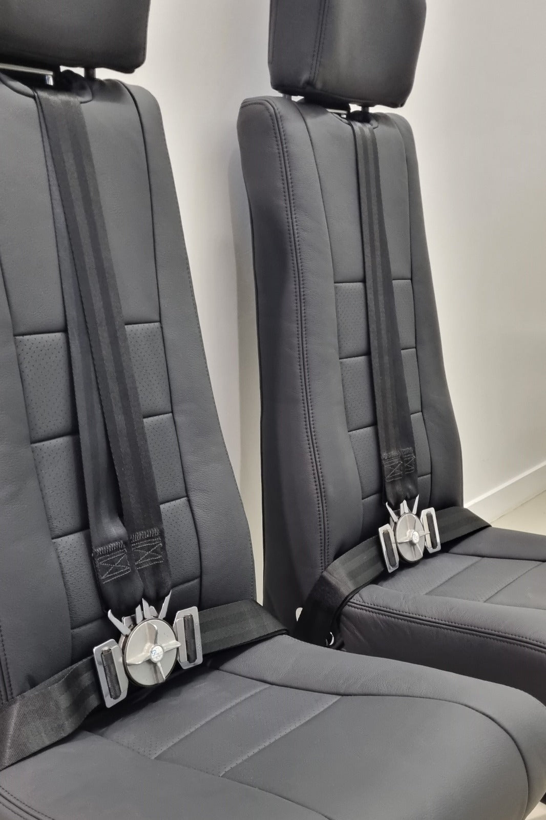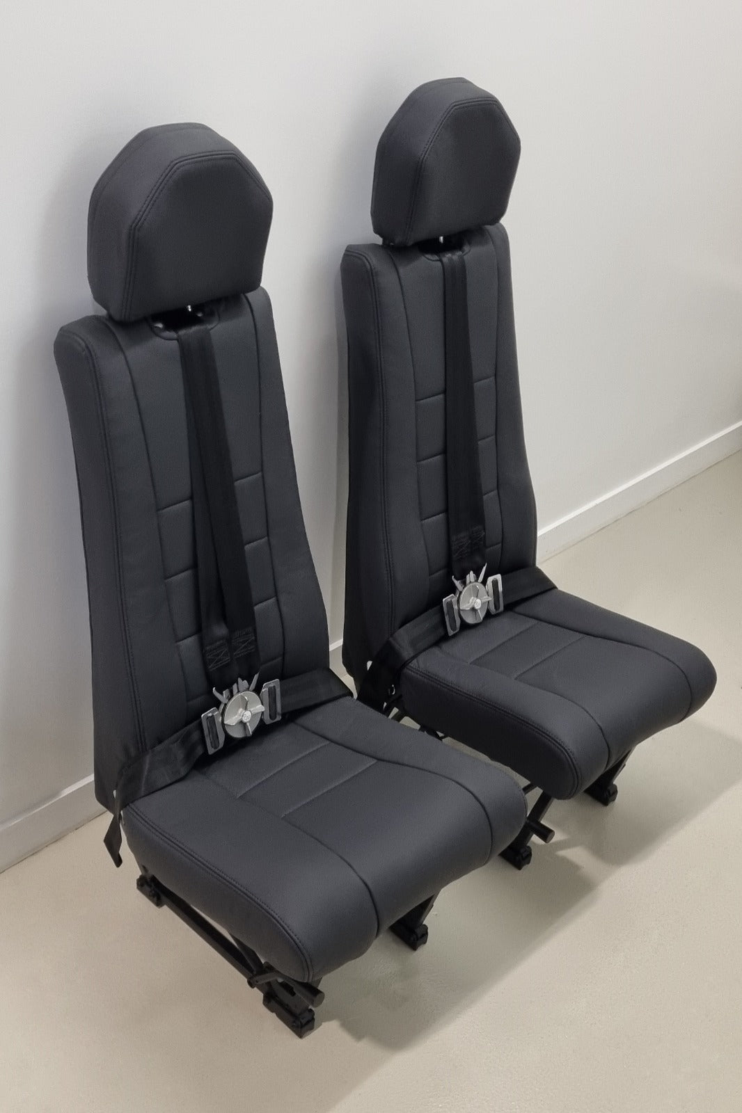 Seat Covers: Manufactured from black leather (ADI-1091), the leather on the seat face center panels is perforated and features horizontal seams, giving the seats their structured look.