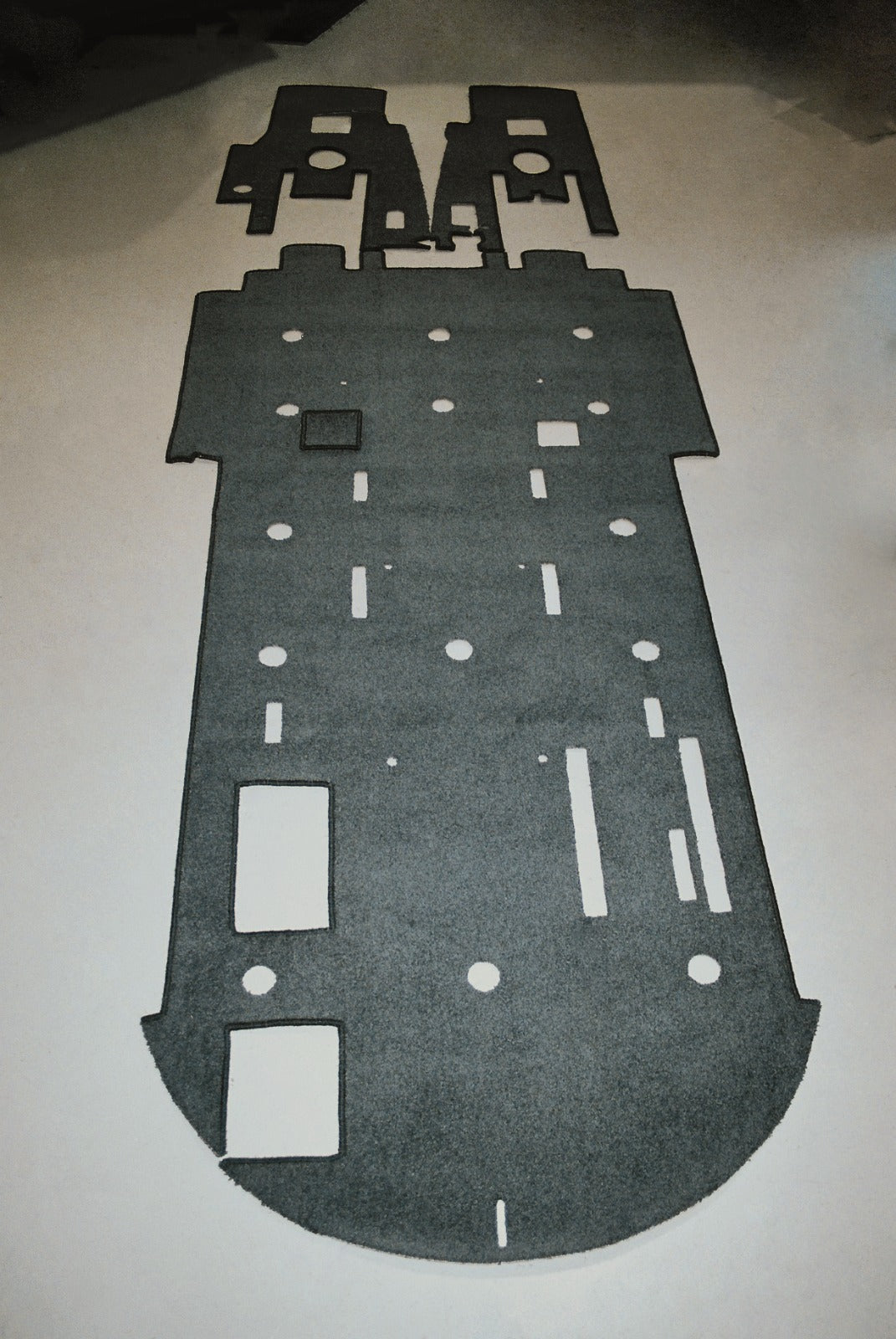 The cabin floor coverings were made from a lightweight slate-colored nylon carpet known for its durability and high-wear resistance, ensuring longevity and comfort in the aircraft's demanding environment.
