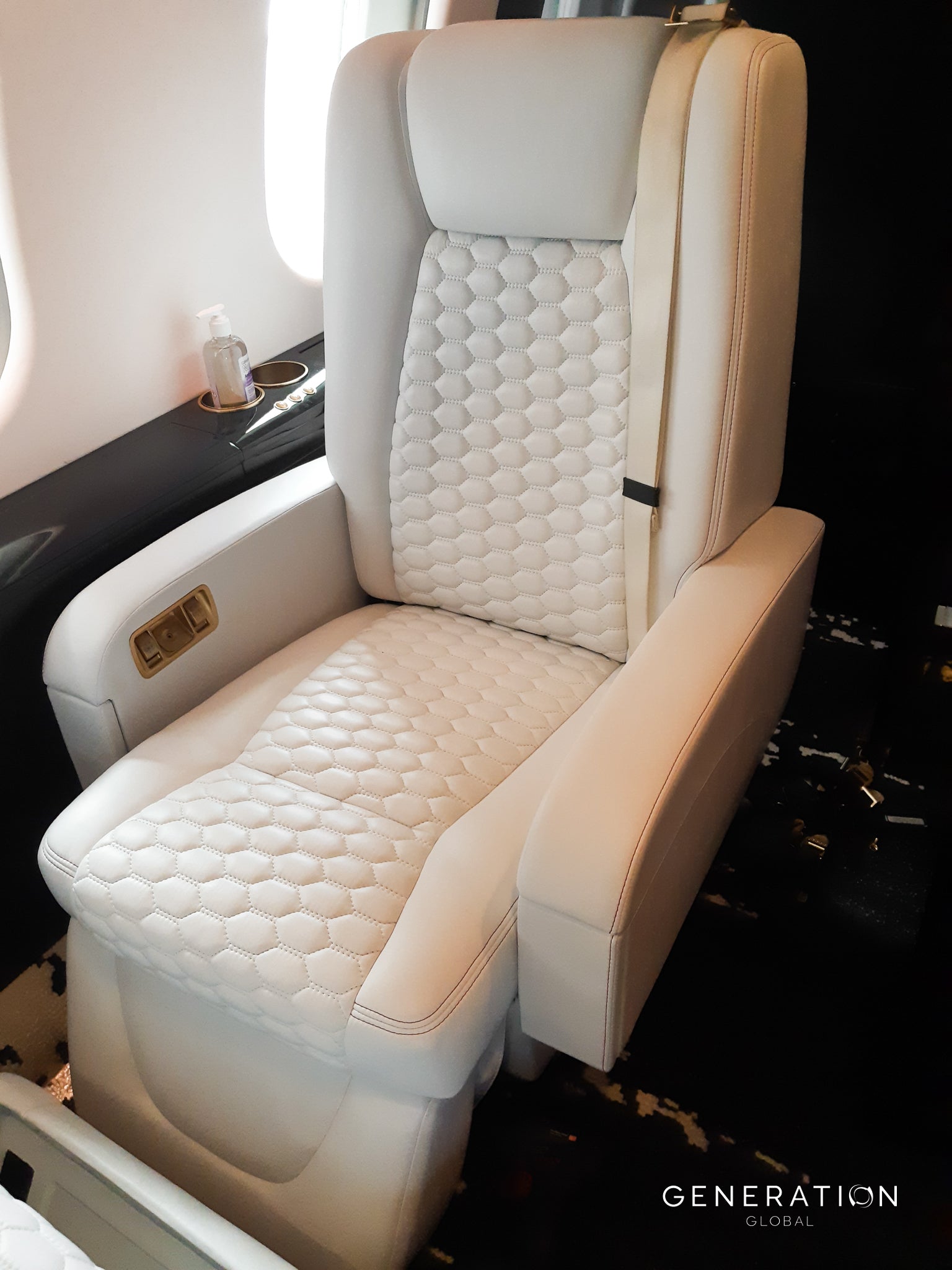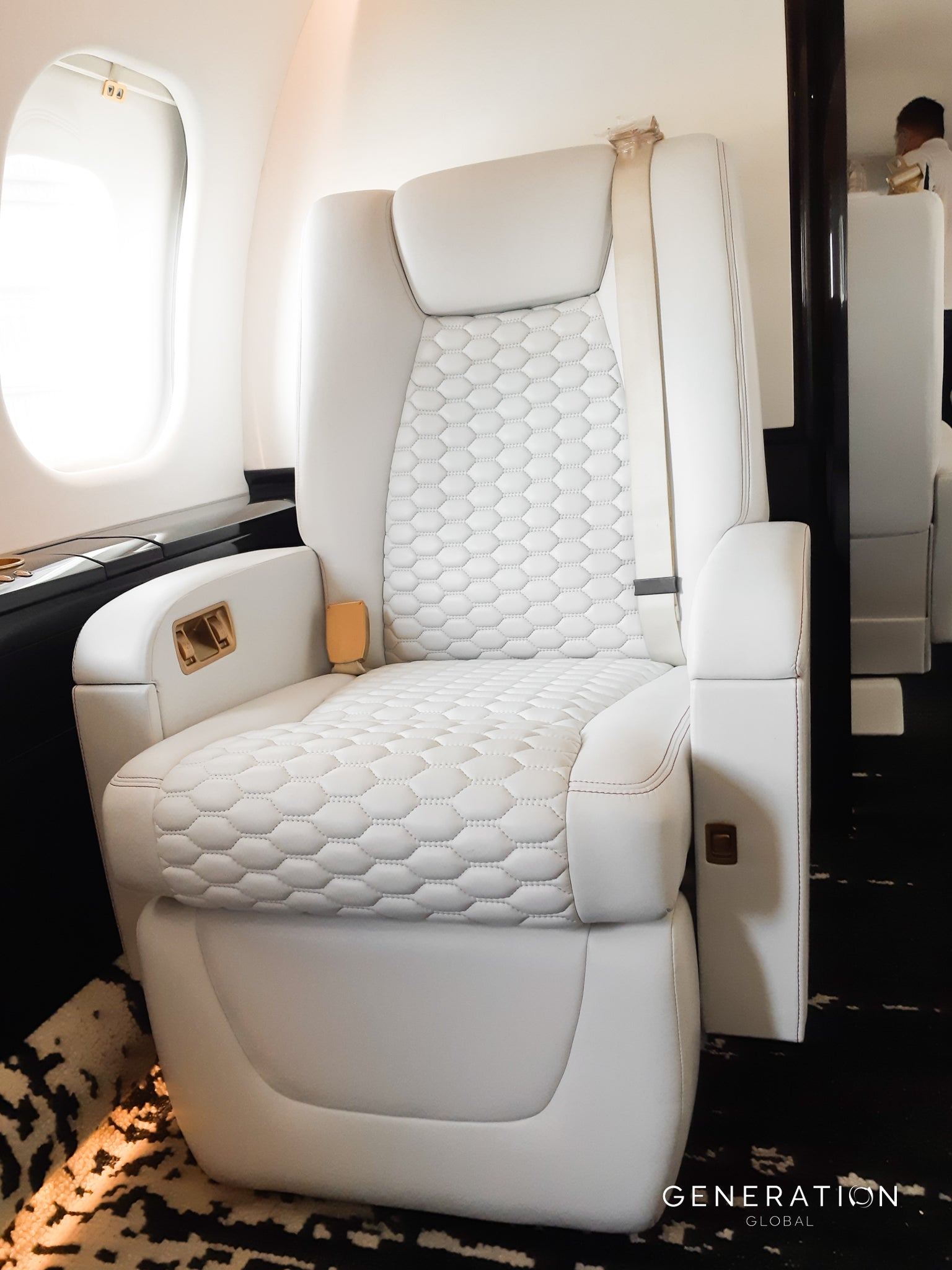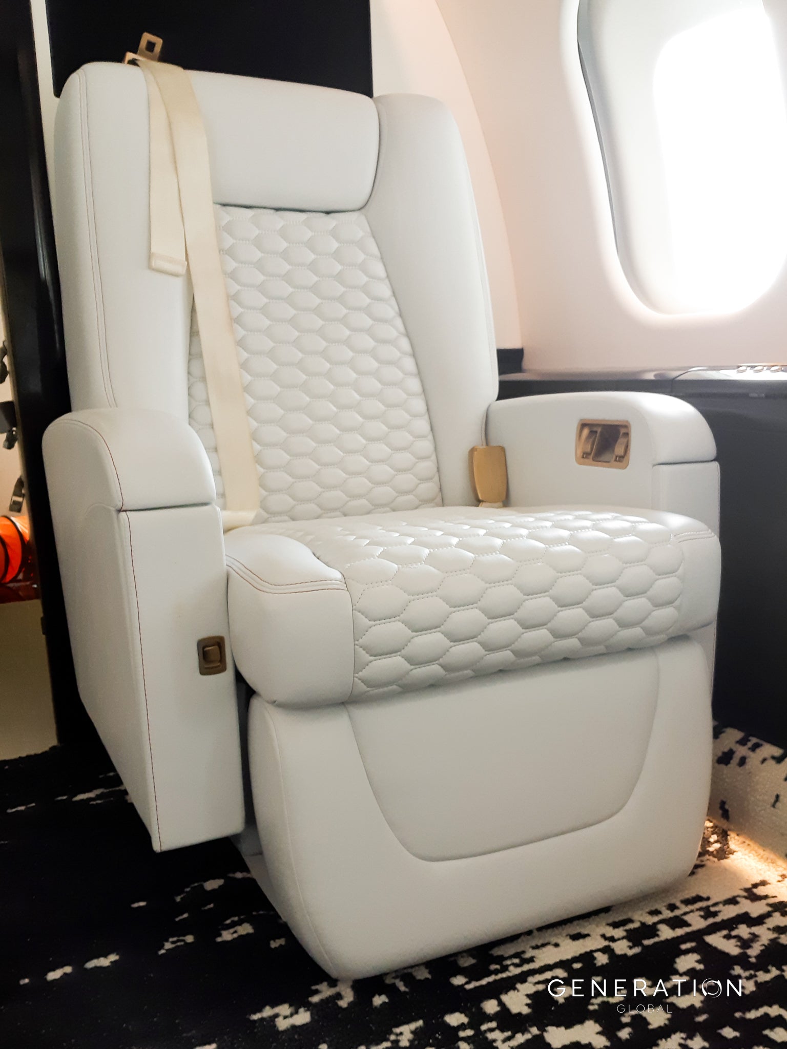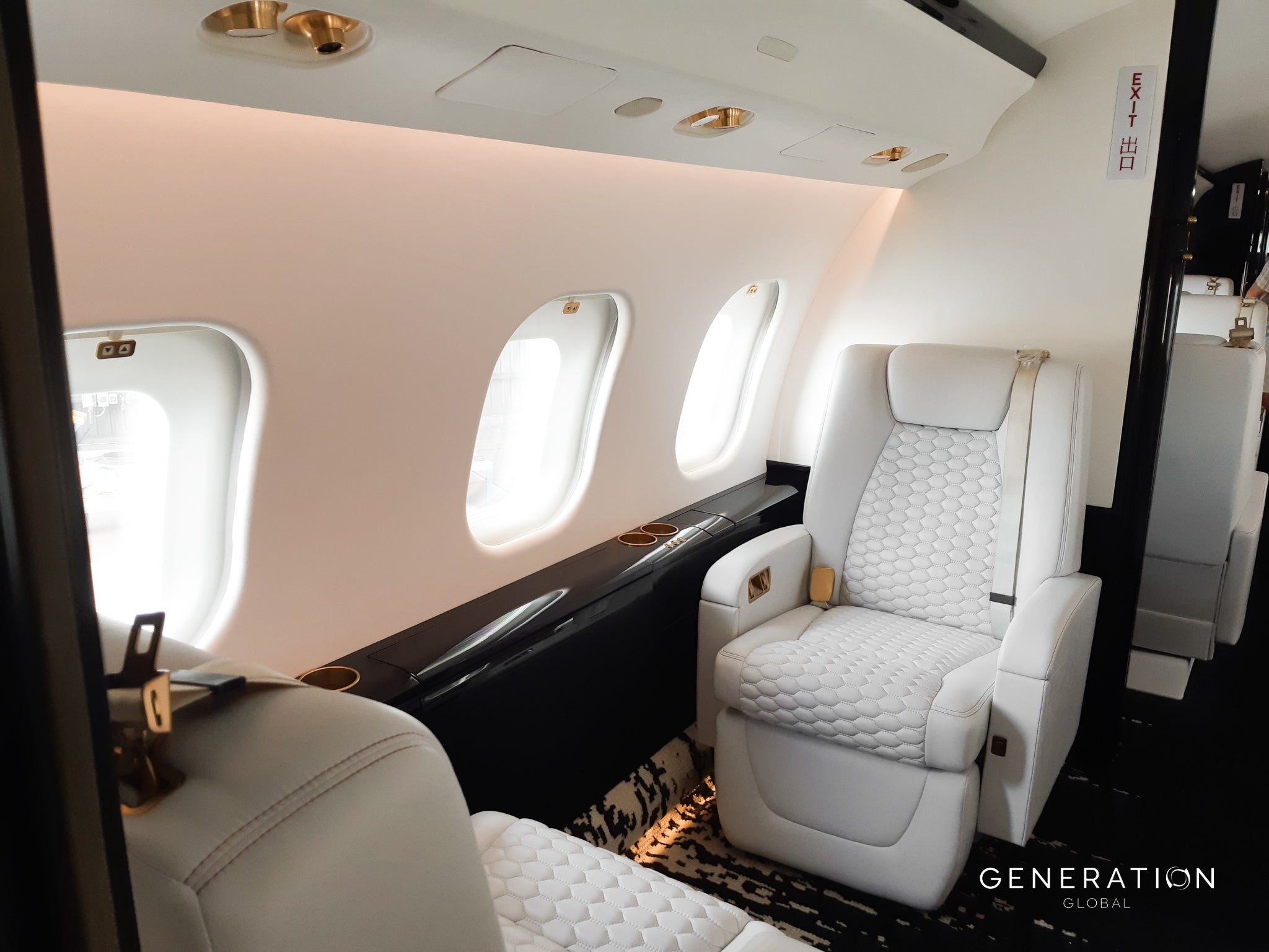 Welcome aboard this refurbished Bombardier Business Jet, where luxury meets comfort. At Generation Global, we pride ourselves on delivering bespoke interior solutions that transform your flying experience.
