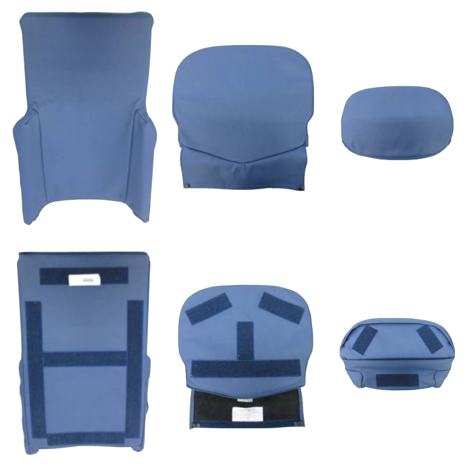 The flight attendant seats on the Bombardier Q300 are wall-mounted, designed for space efficiency and functionality. Each seat consists of a bottom cushion, backrest, and headrest cushions. These cushions are made from PU aviation foam with fire-block coverings, meeting stringent safety standards.
