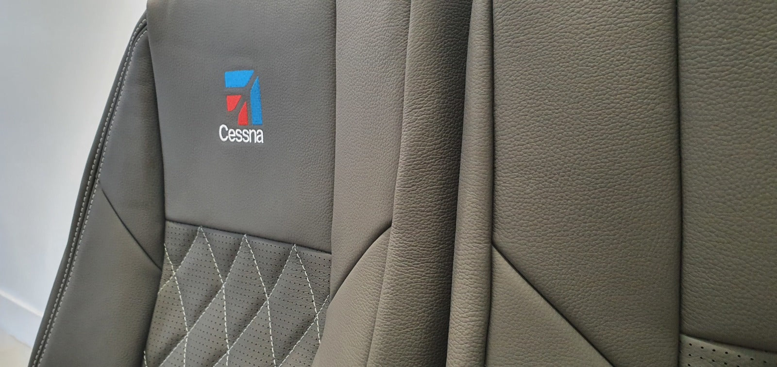 The Cessna logo is embroidered in full colour across all seat backs, including the rear bench seat.