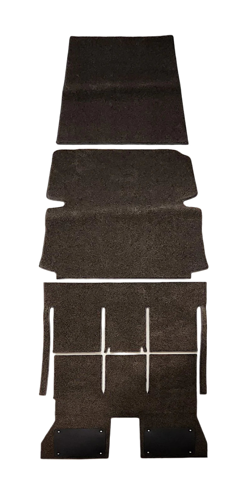 The aircraftβs floor coverings were tailored with cut pile carpet in a kirsh color, providing a sophisticated finish. The carpet was bordered with matching brown mesh binding and backed with underlay for added durability. Additionally, the same carpet was used on the bottom of the sidewalls, ensuring a seamless and cohesive design throughout the cabin.