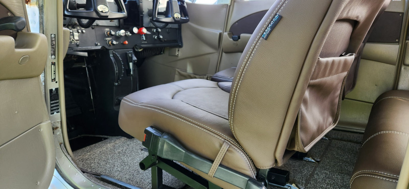 This project involved the renovation of a Cessna 172R Skyhawk aircraft. The design incorporated shades of brown, beige, and maroon, creating a warm, sophisticated interior. The refurbishment included seat covers, floor coverings, and repairs and upgrades to the sidewall panels.