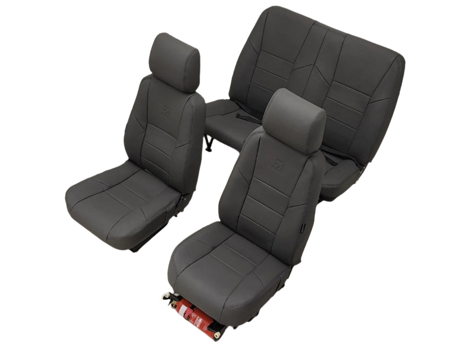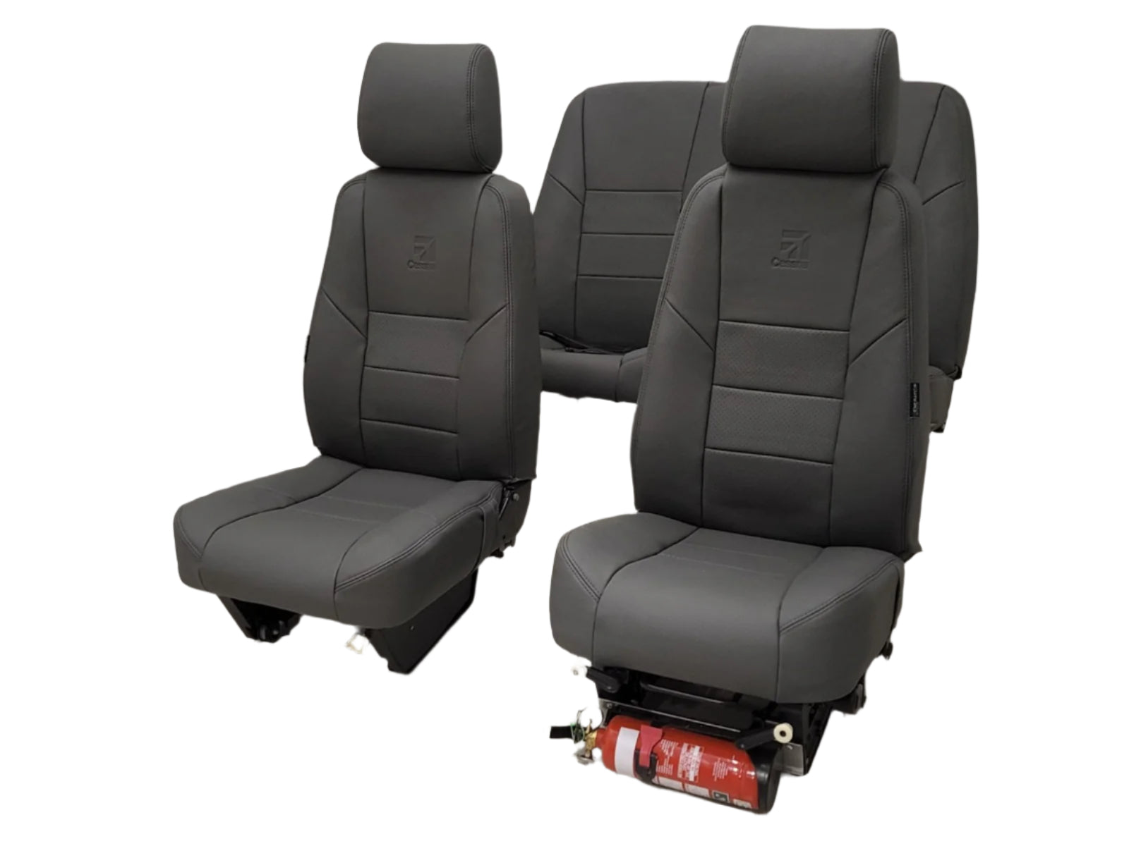 The charcoal grey leather was not only used for the seat covers but also extended to the sidewalls, armrests, and draught excluders, providing a seamless look throughout the cabin. For a cohesive theme, all plastic trims were carefully painted to match the headlining, ensuring color consistency across the interior.
