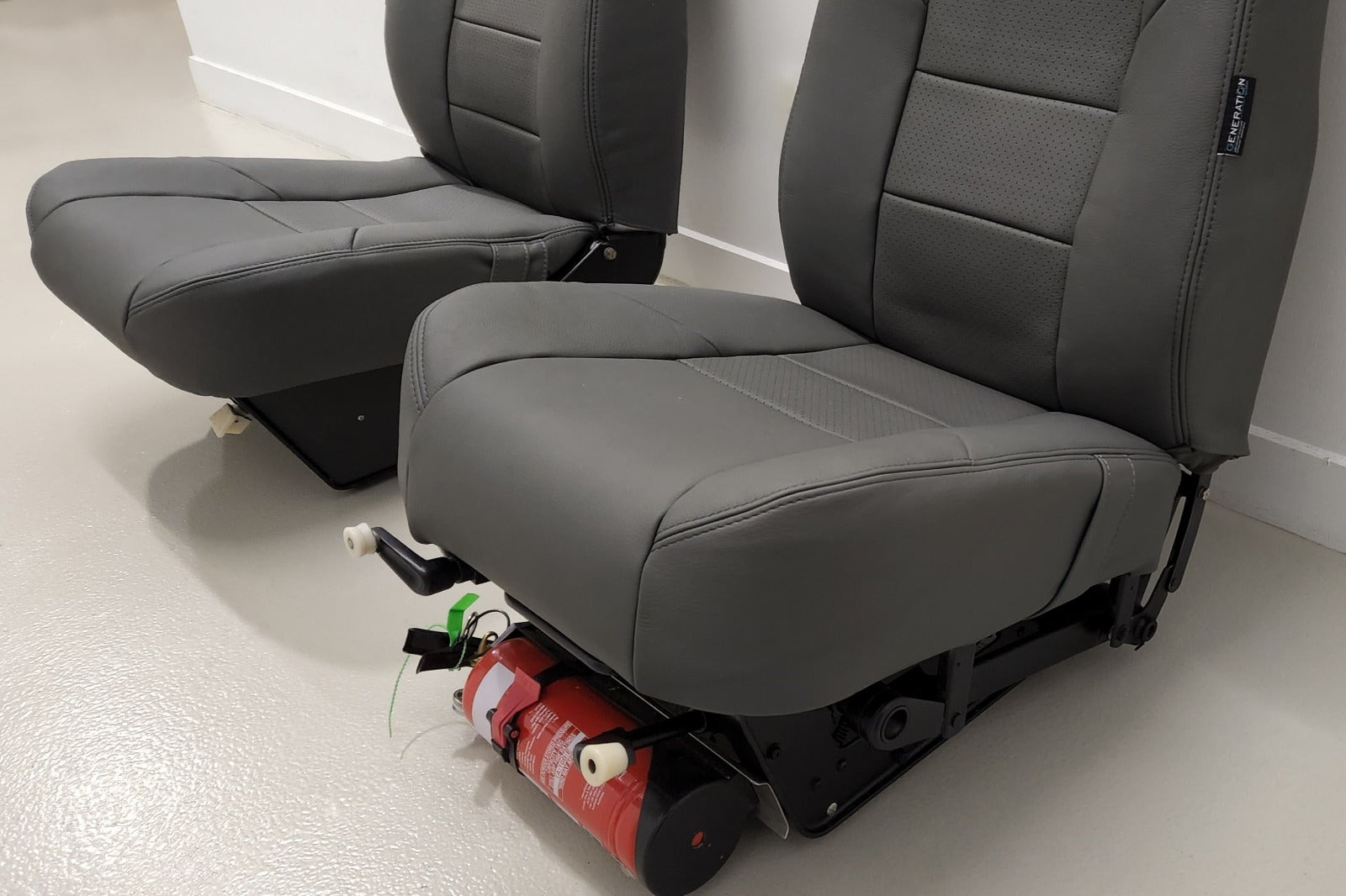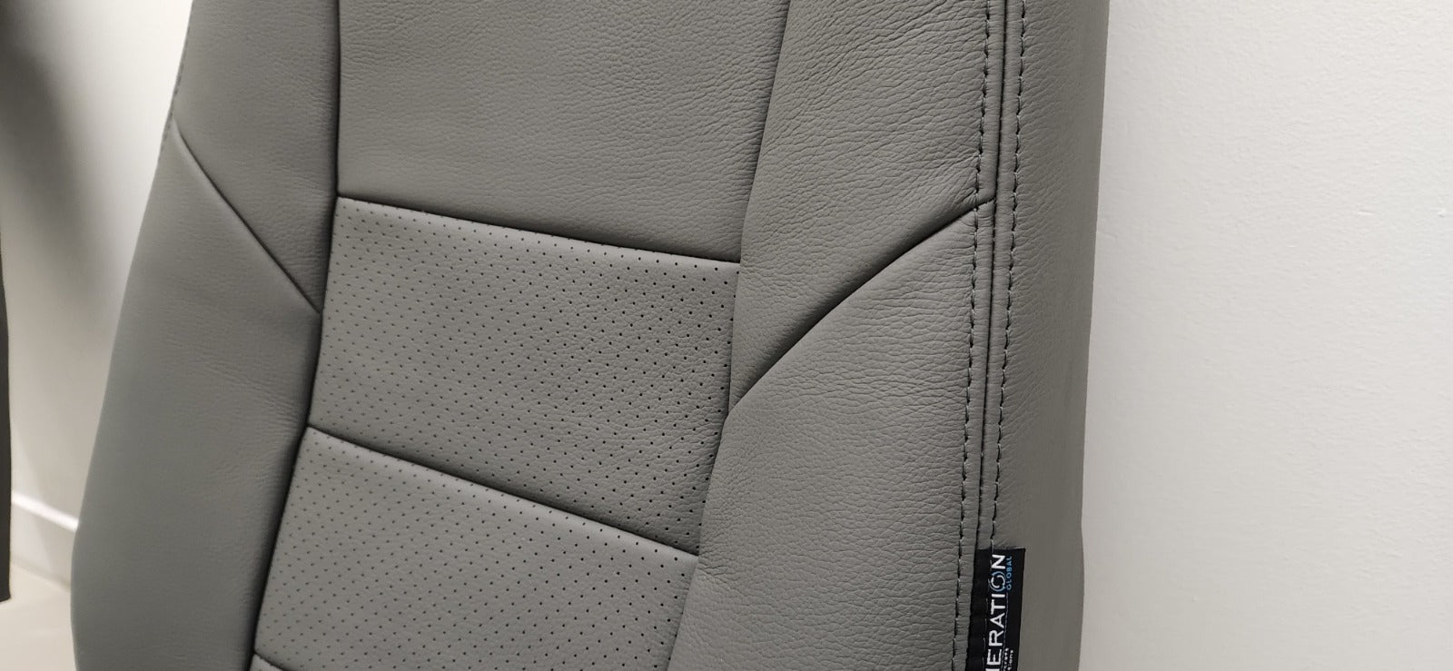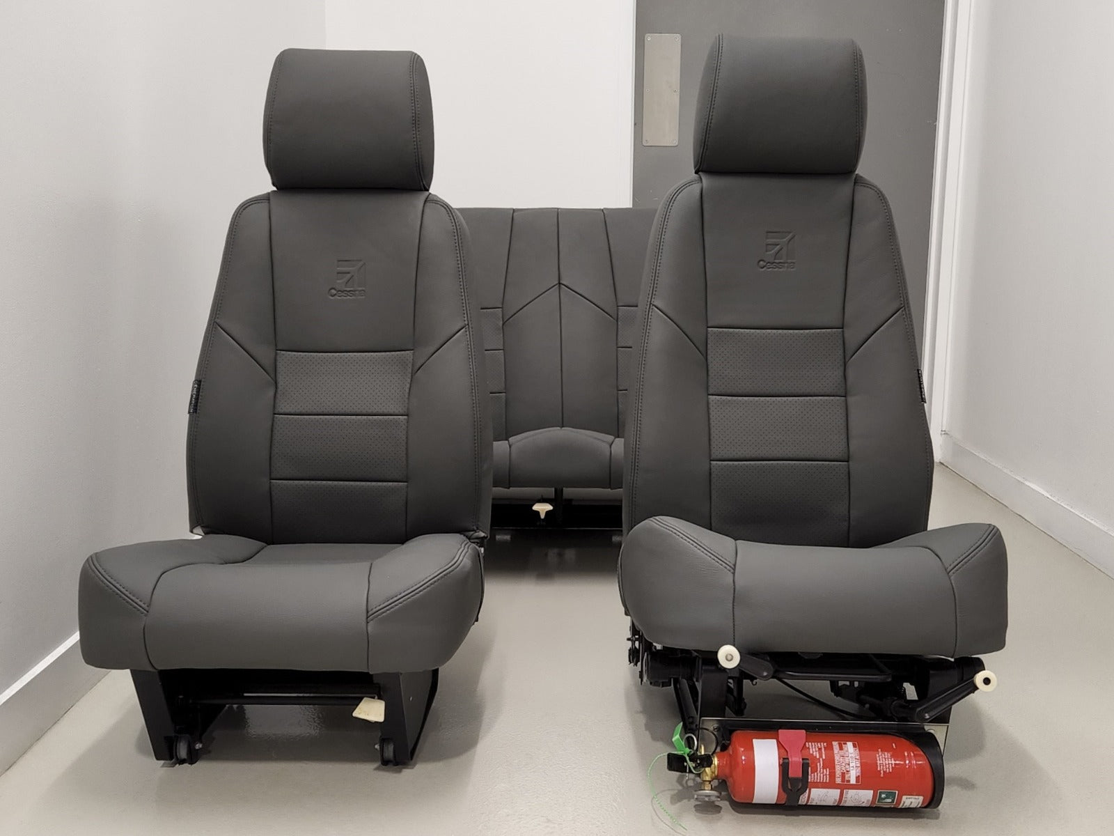 This Cessna 177 is equipped with two crew seats and a rear bench seat. The new seat covers are crafted from breathable SP5 perforated leather, with perforated leather inserts that add both comfort and visual appeal. As an additional touch, we embossed the Cessna logo on the backrests of the two front seats, providing a personalized and professional look.