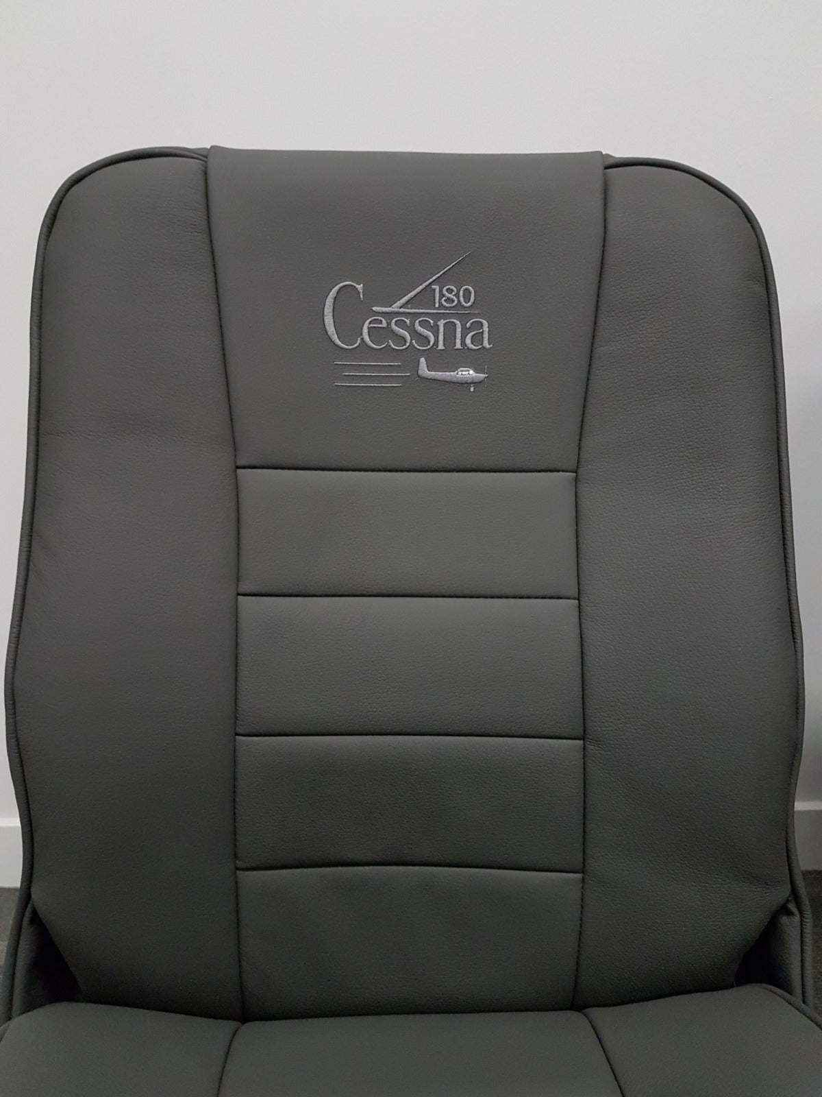 A standout feature was the embroidered Cessna logo, carefully stitched in charcoal grey thread to reflect the original insignia design found in the aircraft’s documentation. The detailed embroidery adds both authenticity and a touch of class.
