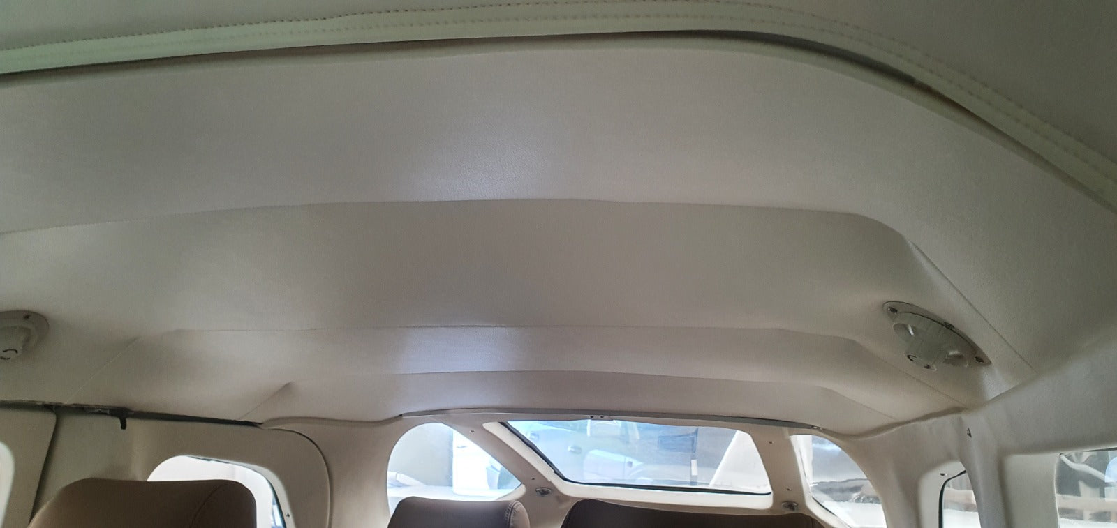 For the headlining, Porcelain vinyl was chosen, which complements the interior plastic trim and is made with zippers for easy maintenance access.