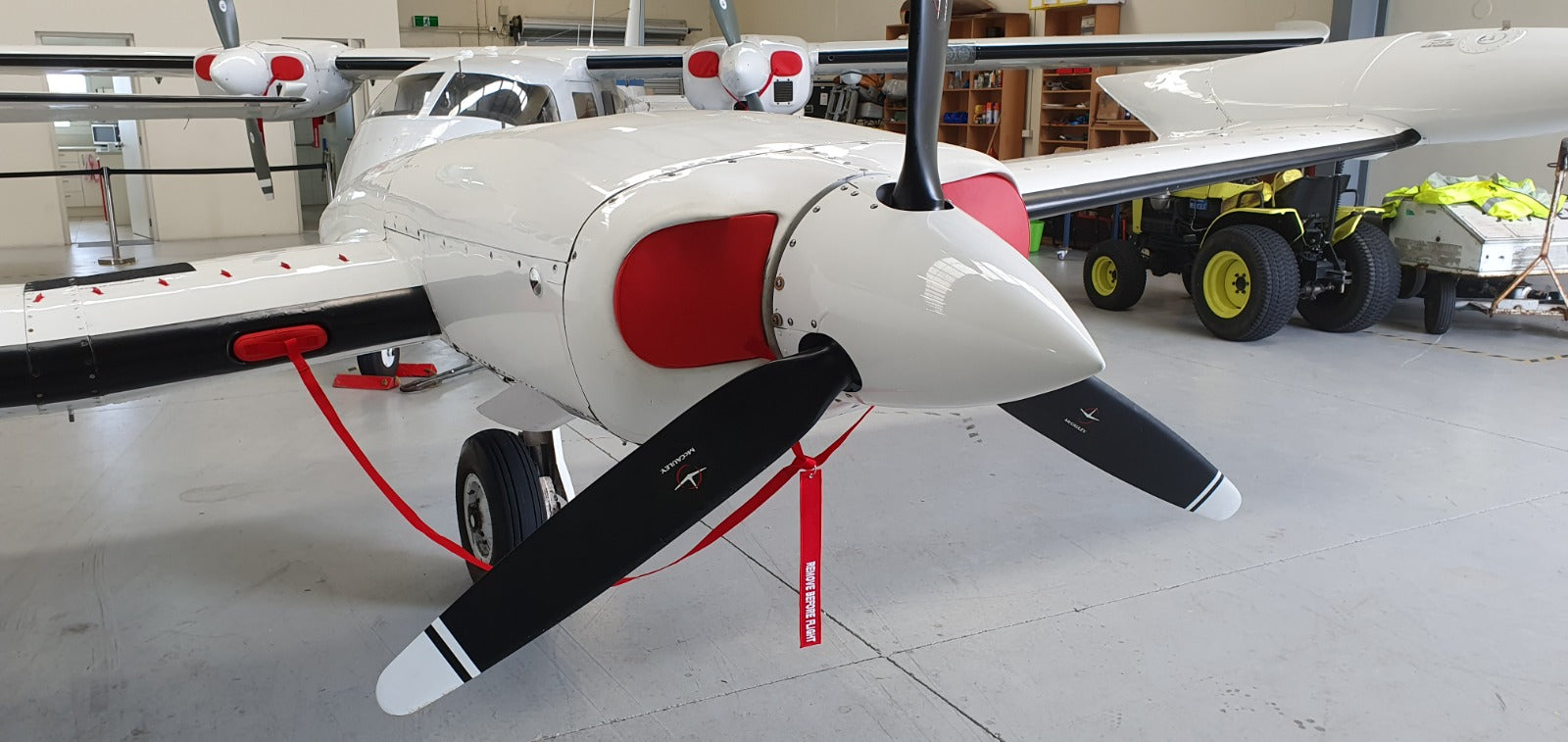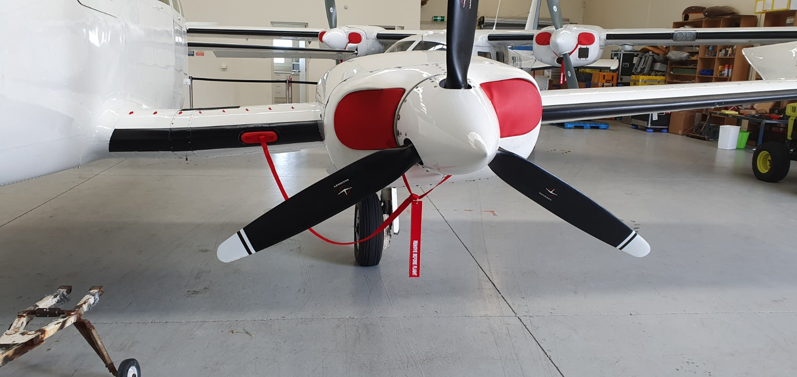 Intake Bungs: Each intake bung is fitted with PU foam cut to perfectly match the shape of the intake. The foam is encased in bright red vinyl to make the bungs easily visible. These are connected by red webbing and come with 'Remove Before Flight' tags for heightened visibility.