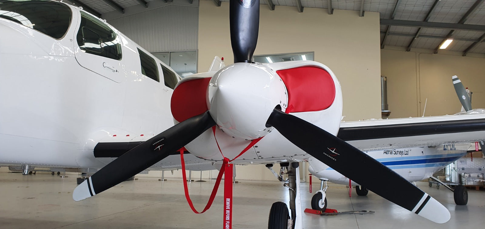 Pitot Tube Covers: The pitot tube covers feature bright red vinyl sleeves with stitched-on Velcro, ensuring they stay securely in place, protecting the pitot tubes during downtime.
