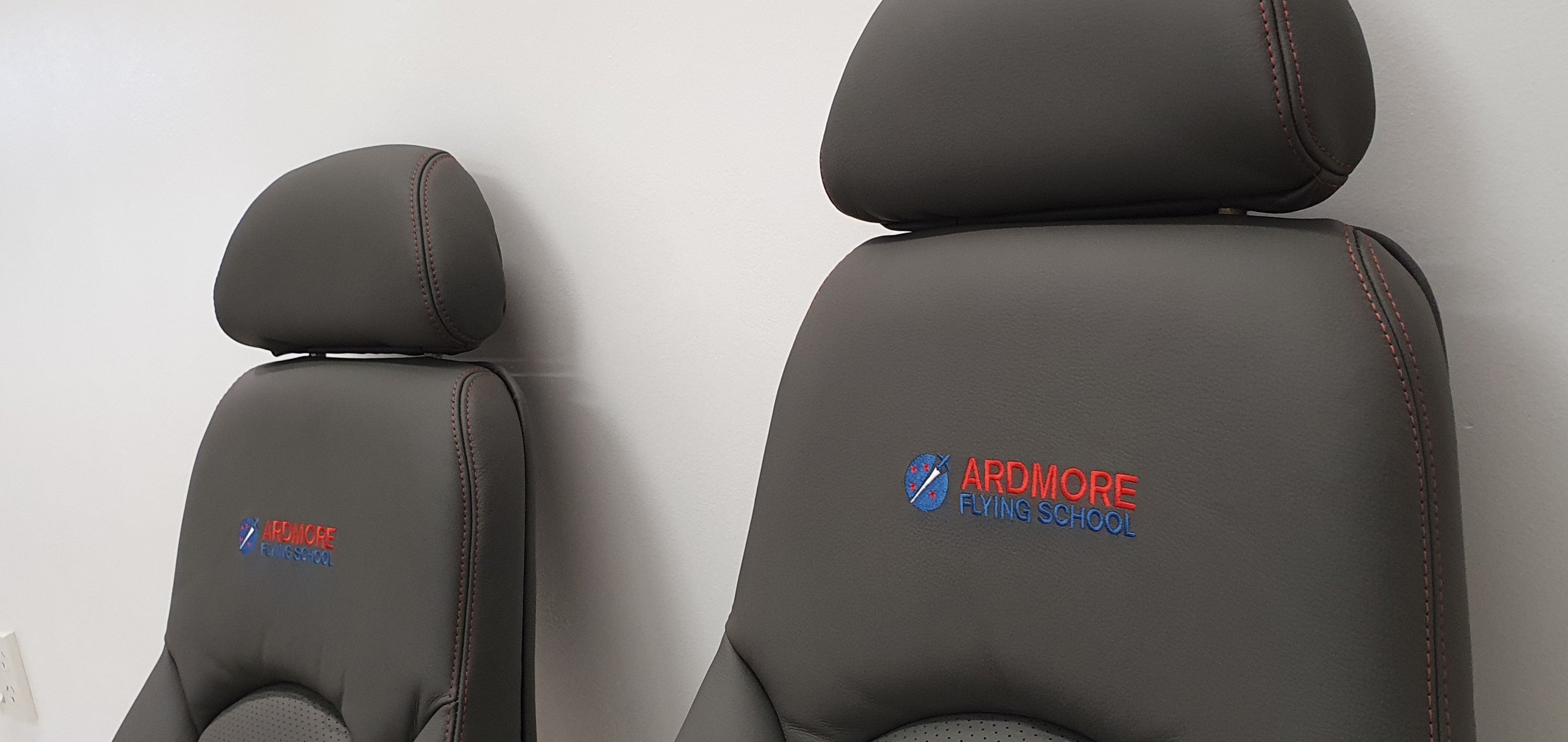 The seat backrests featured the flying school’s logo embroidered, personalizing the seating to reflect the school’s identity.