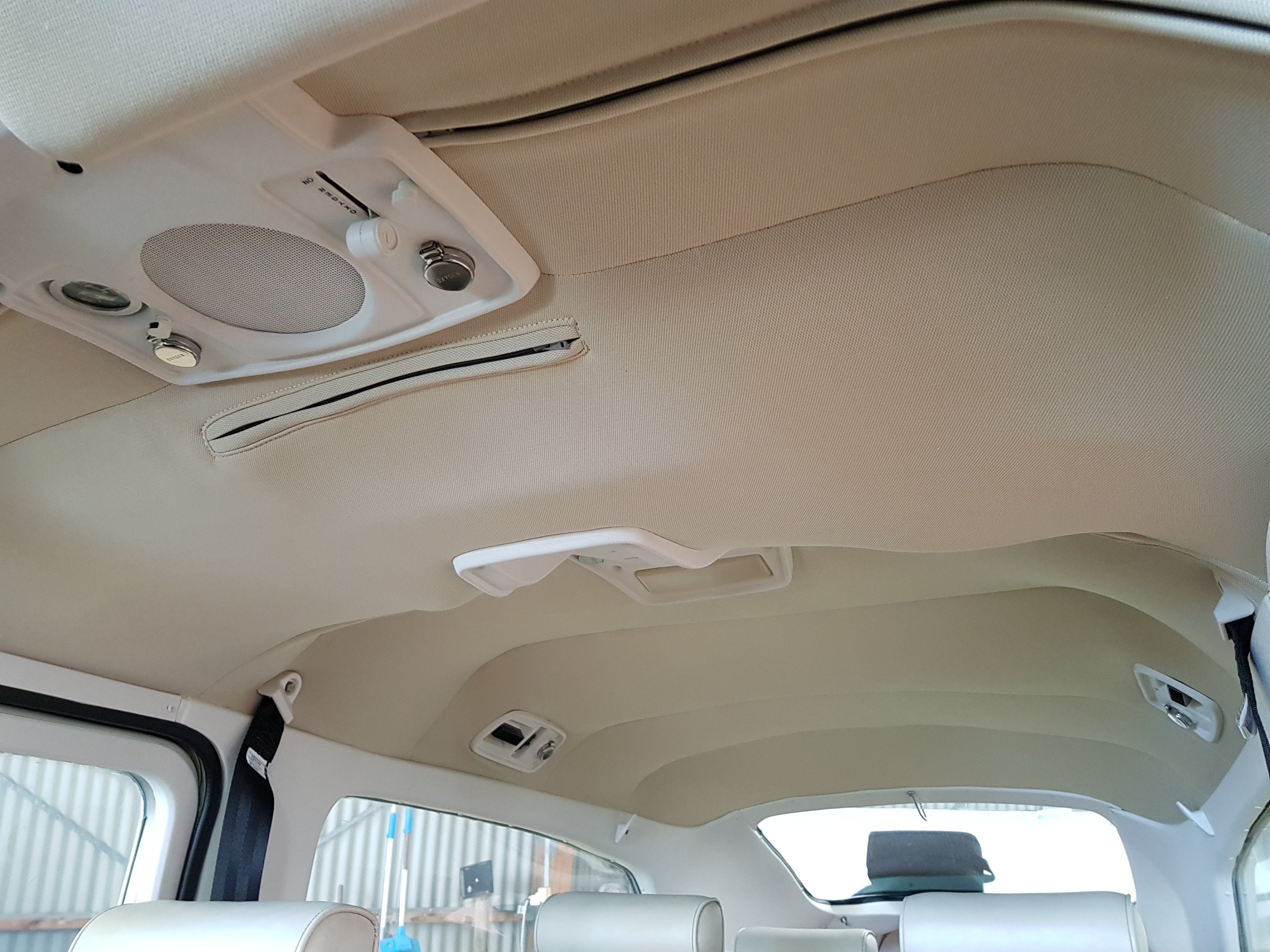 The headlining and sun visors were upholstered in a light fabric (F19), brightening the cabin and enhancing the sense of space. -