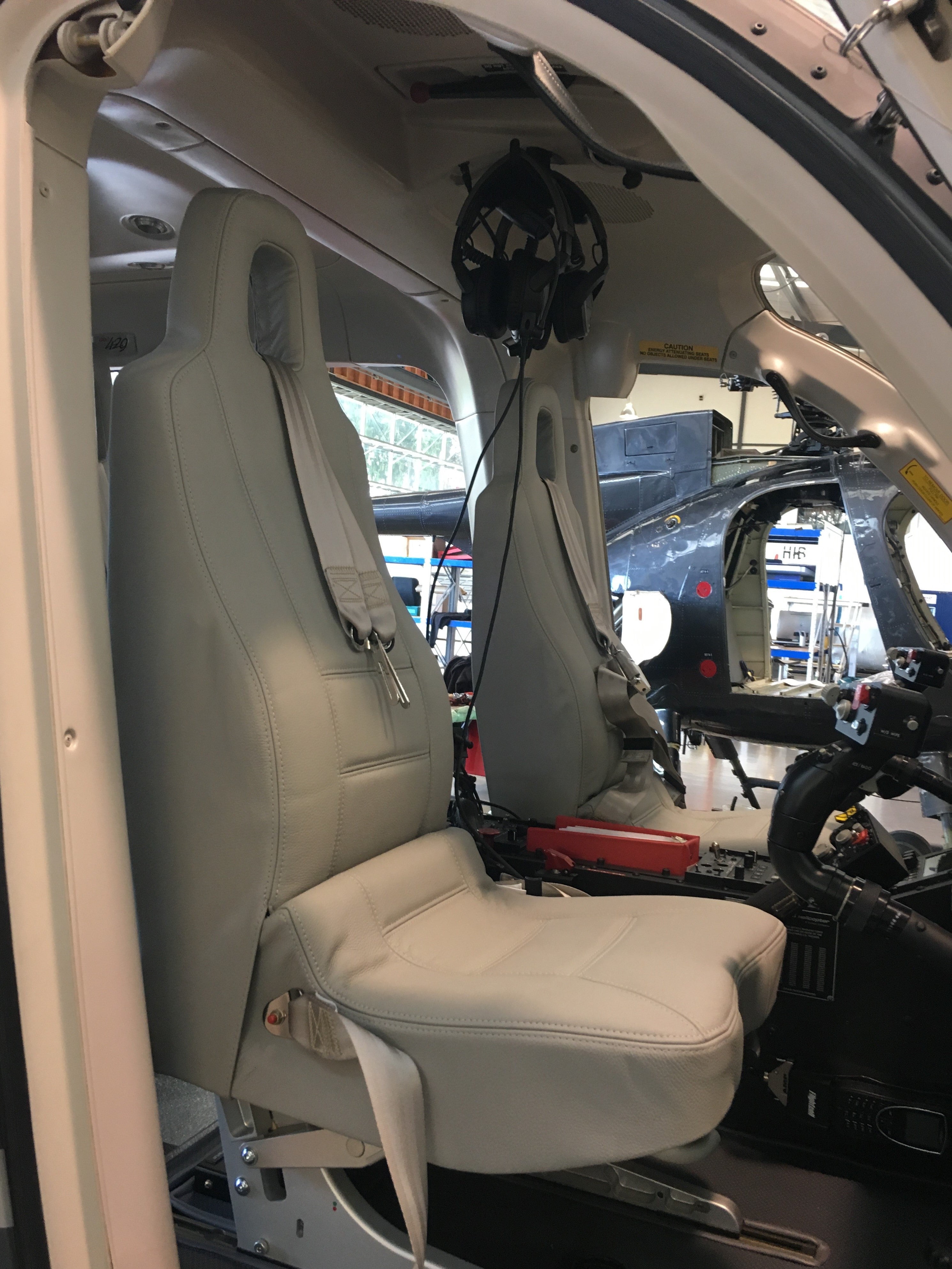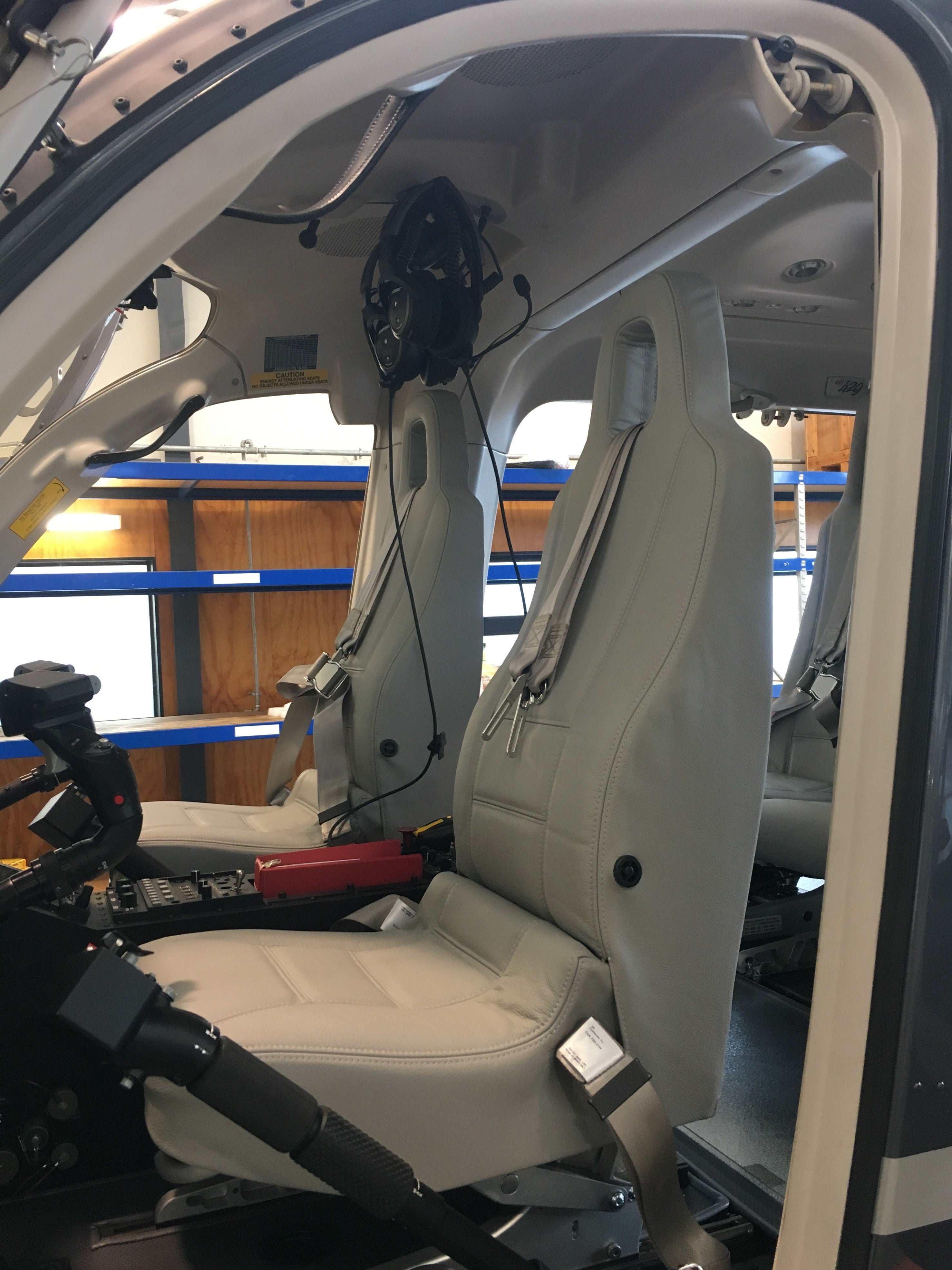 The front crew seating and rear passenger seating were designed as two-piece seats, each with an integrated headrest and a 4-point harness for safety. The pilot seats were more adjustable, offering greater comfort and support, which made them bulkier compared to the rear passenger seats. This distinction in design ensures that both functionality and comfort are provided to the crew and passengers in the 429.