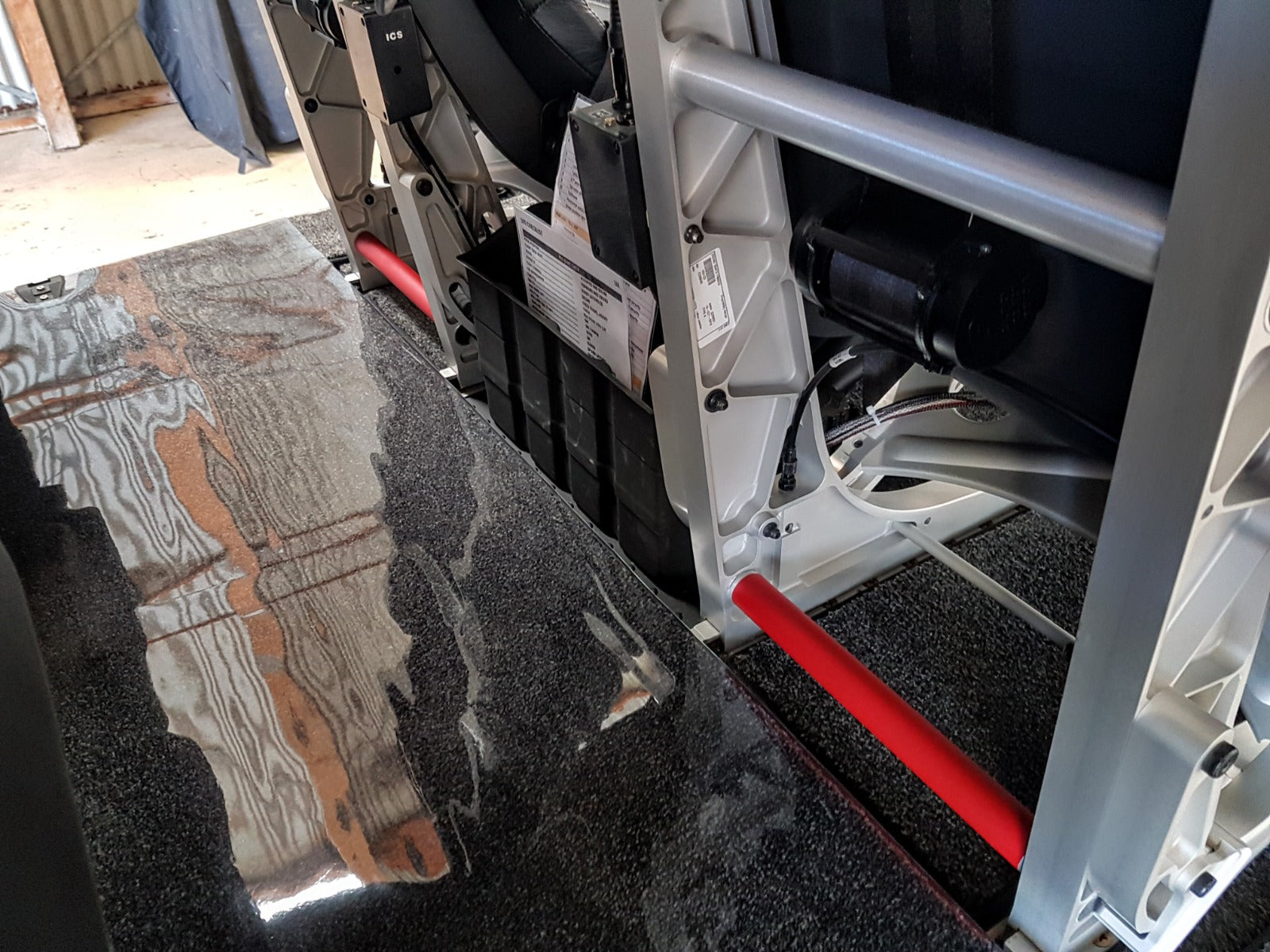 Forward cabin carpet, precision cut with openings for flight controls and seat rails