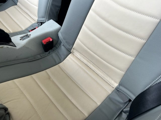 The DA-40 seat covers consisted of two sets of front seat covers and two sets of rear seat covers. The design features a two-tone leather design. The main color of the seat covers is ancient grey leather (ADI β 1151), with sand leather (ADI β 4041) used for the insert panels.