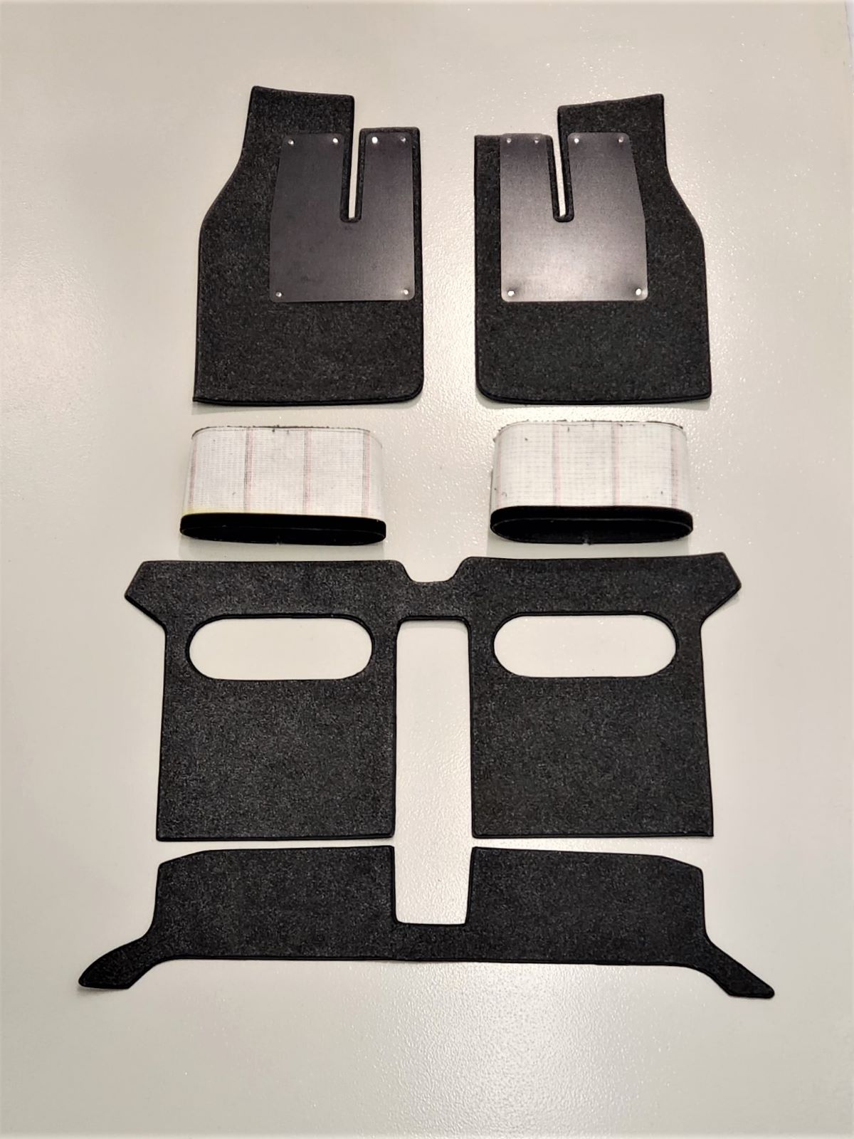 A full set of floor coverings was supplied in ash Liberty carpet, designed to complement the color scheme of the seats and trim. The carpet sections include oval intake sections with a mesh end and Velcro on the forward edge for secure fitting. Additionally, ABS plastic heel mats were integrated into the carpet to protect high-wear areas.