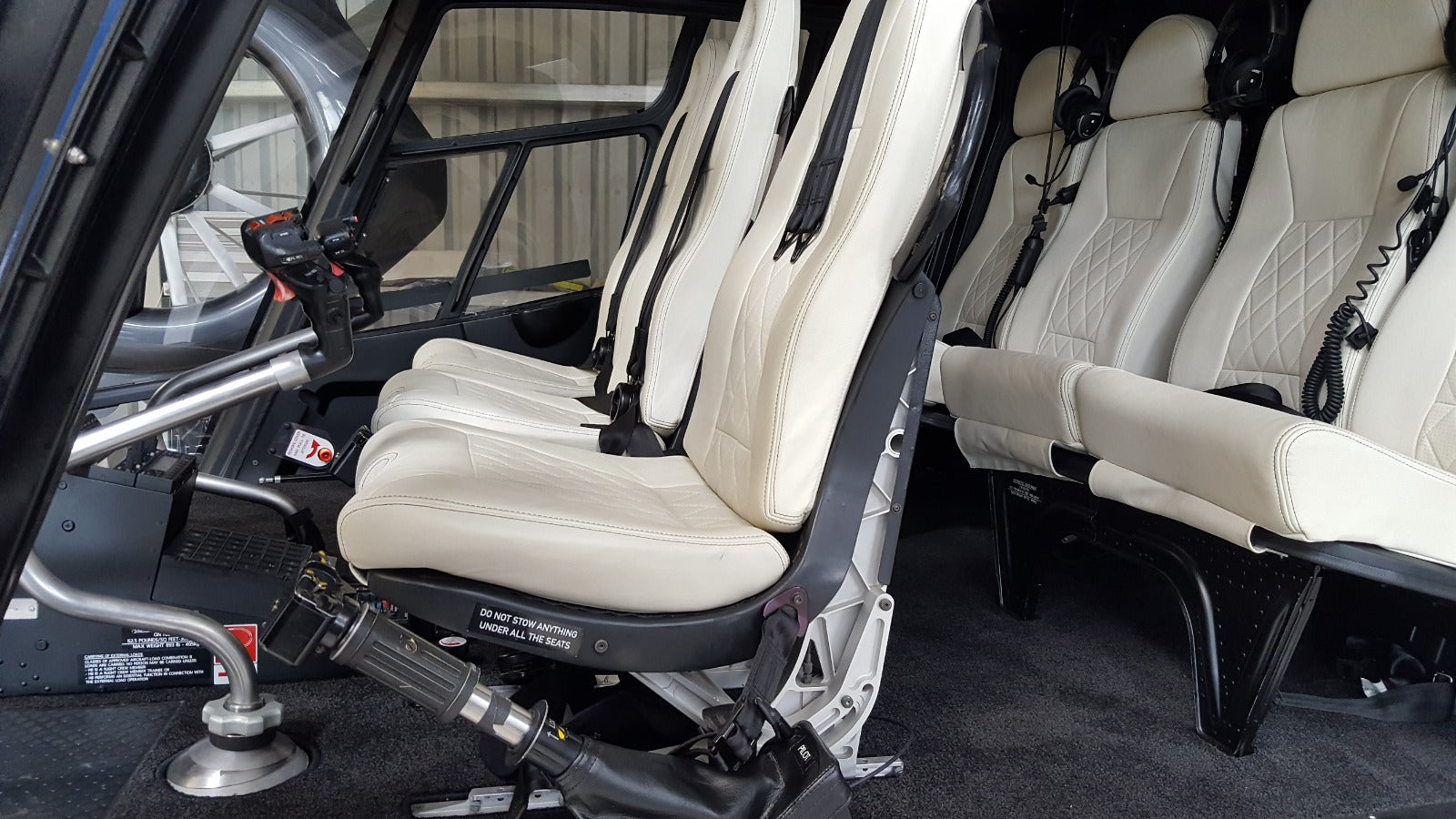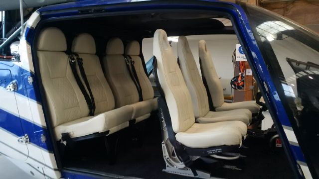 The 159 Series Sicma seats in the front of the helicopter were paired with Generation IV bench seats in the rear, similar to those found in the AS350 helicopter, making for a uniform and functional seating arrangement.