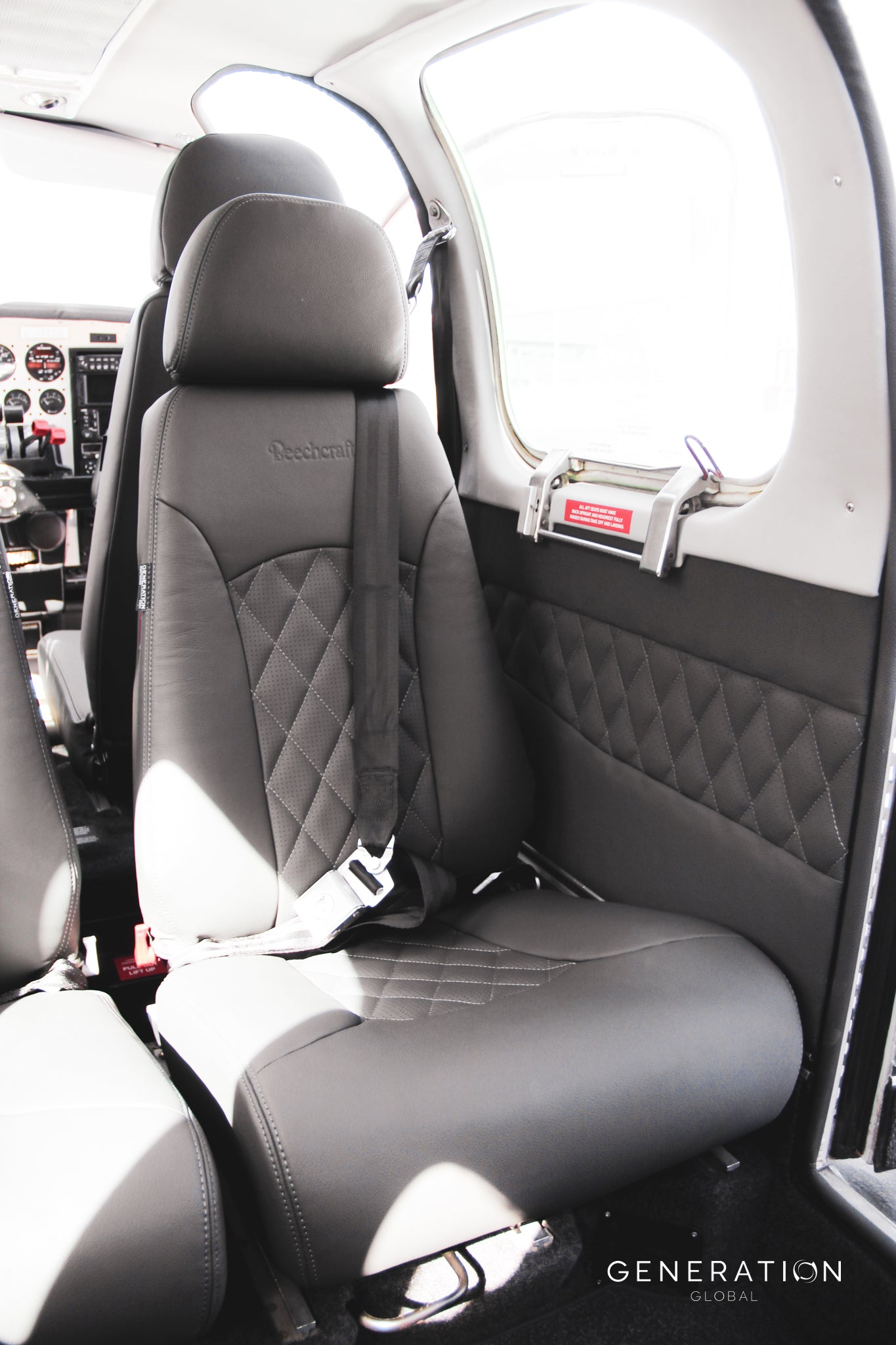 Discover the meticulous craftsmanship of our recently refurbished Baron B58 interior. Every stitch is perfect, and every corner is flawlessly finished. Our commitment to quality ensures that you enjoy a luxurious and comfortable flight every time. Creating a bespoke interior gives you that extra level of service, the ability to have your seats fitted for you, to have that personal service where you can discuss each step of the journey with someone who has a wealth of knowledge in aircraft interiors, the option to have our internal designers involved in the design process and the ability to include extra features that aren't found on our website in your interior.