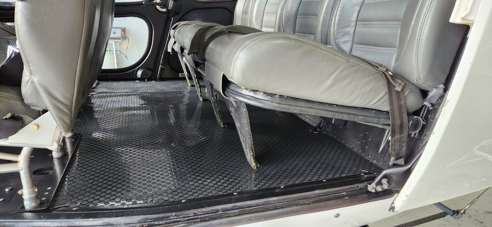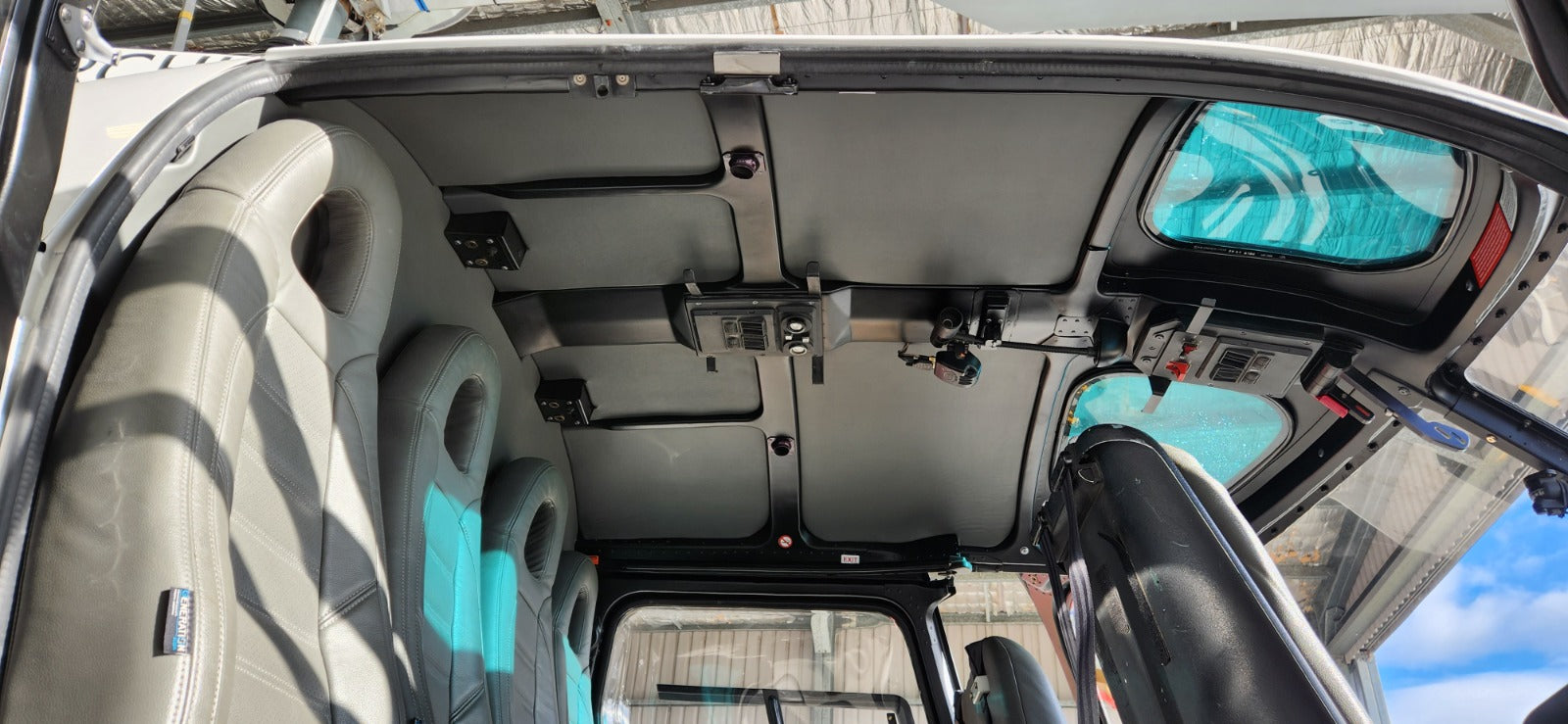 This project involved enhancing an AS350 helicopter that already had a Generation Global interior by adding new floor coverings, installing new ceiling inserts, and fitting a rear bulkhead kit.