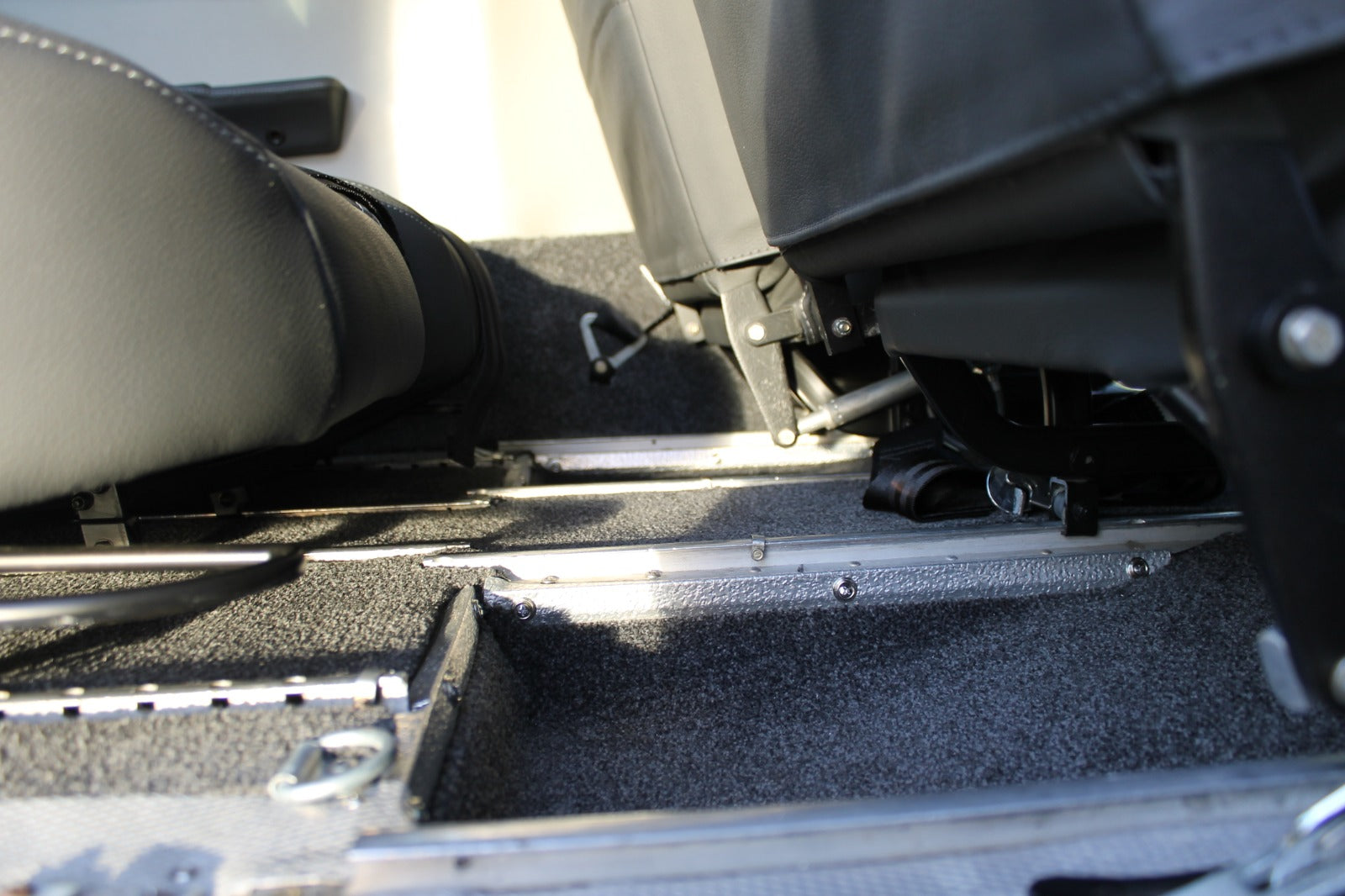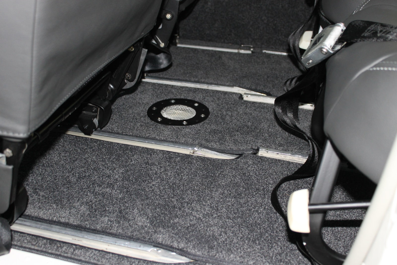 The aircraft’s flooring was outfitted with plush-pile Zimmer carpet, which was edged with black mesh binding for a clean and sharp finish. The alloy heel mats were placed in high-wear areas to protect the carpet and ensure long-lasting durability.