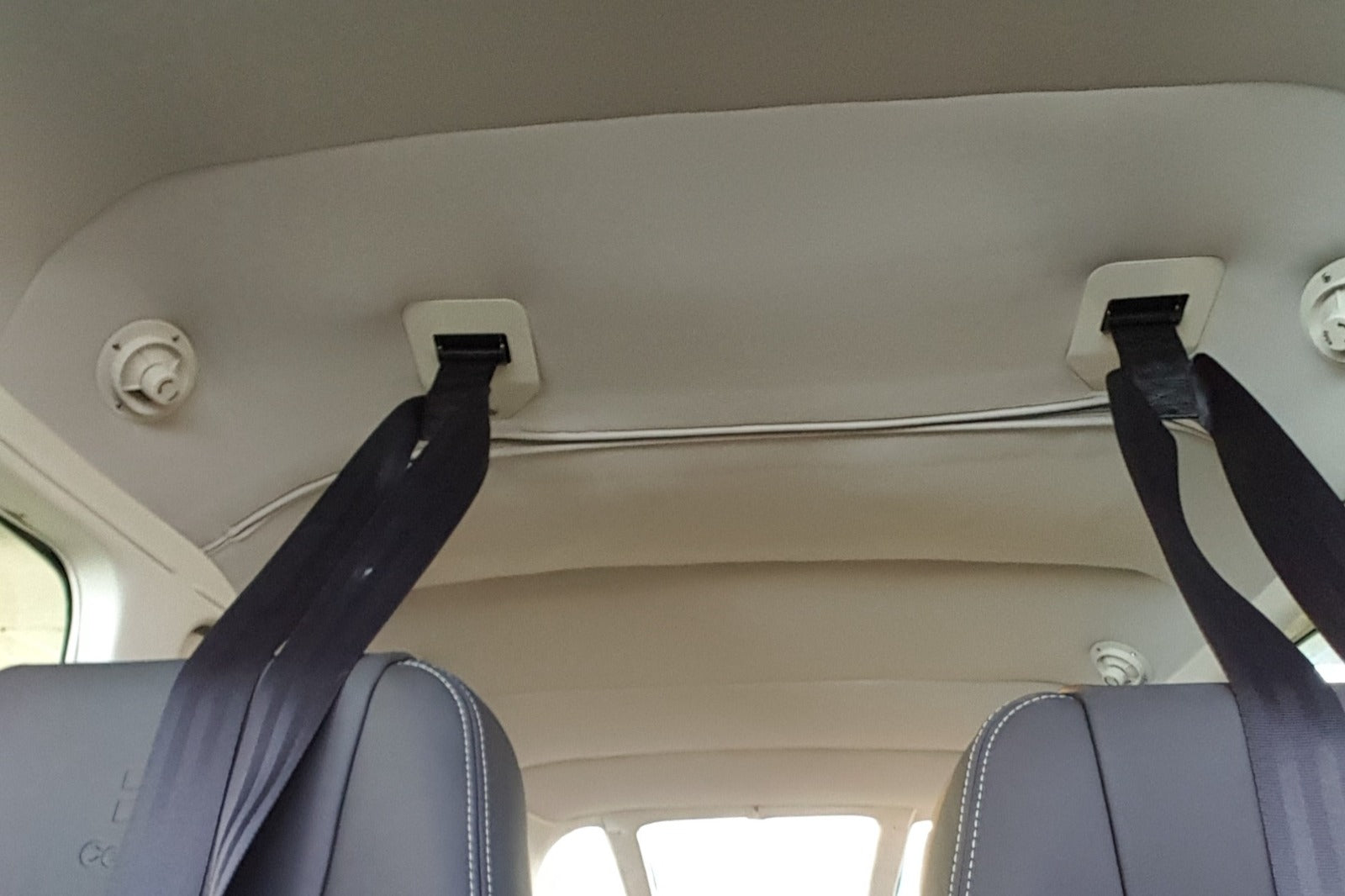 The headlining was carefully suspended and constructed with foam-backed fabric (F02). It features cutouts for easy access to roof components and includes a hidden roof access zip for additional convenience. The custom plastic surrounds were fitted around the seatbelt and air conditioning vents, ensuring a tailored, refined look.