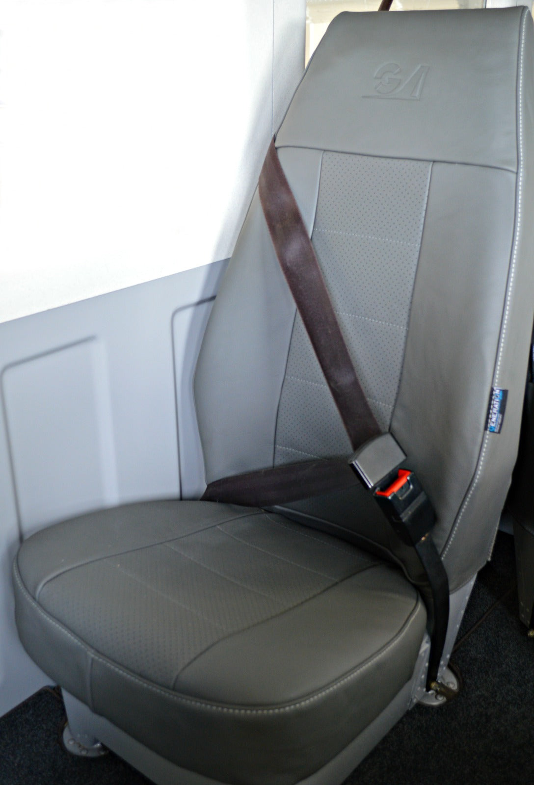 The upper seatback of each seat featured an embossed Gippsaero GA8 logo, adding a branded touch to the refurbishment.