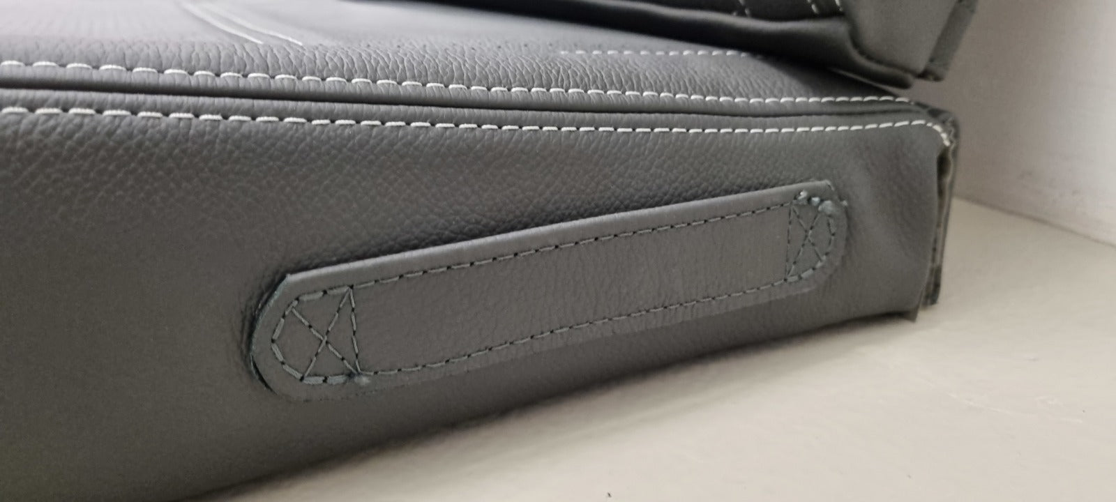 The foam cushions used in this project are manufactured from Genlite foam, a high-quality polyurethane foam developed specifically for aviation by Generation Global. The seat backrest cushions feature a complex design with multiple profiles. These cushions are computer cut into individual components and then assembled with specialist adhesives to ensure maximum comfort and support.