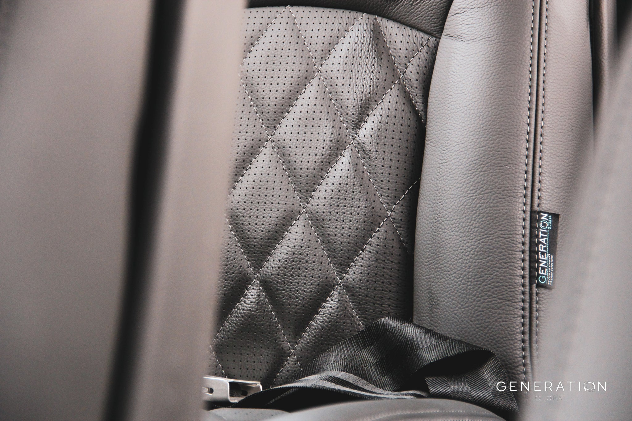 Seats: Recovered in Lead Grey leather with the Aerostar logo embossed onto the seats and perforated center inserts featuring diamond quilting in ancient grey thread.
