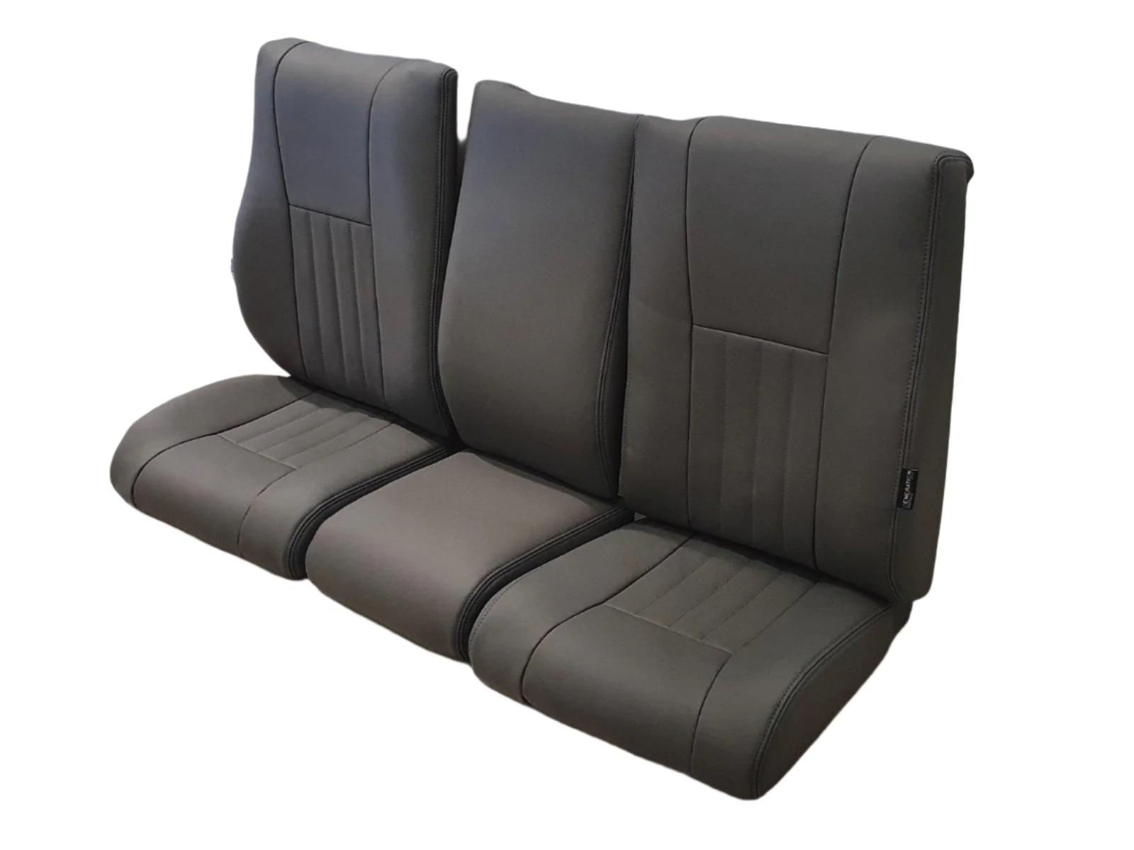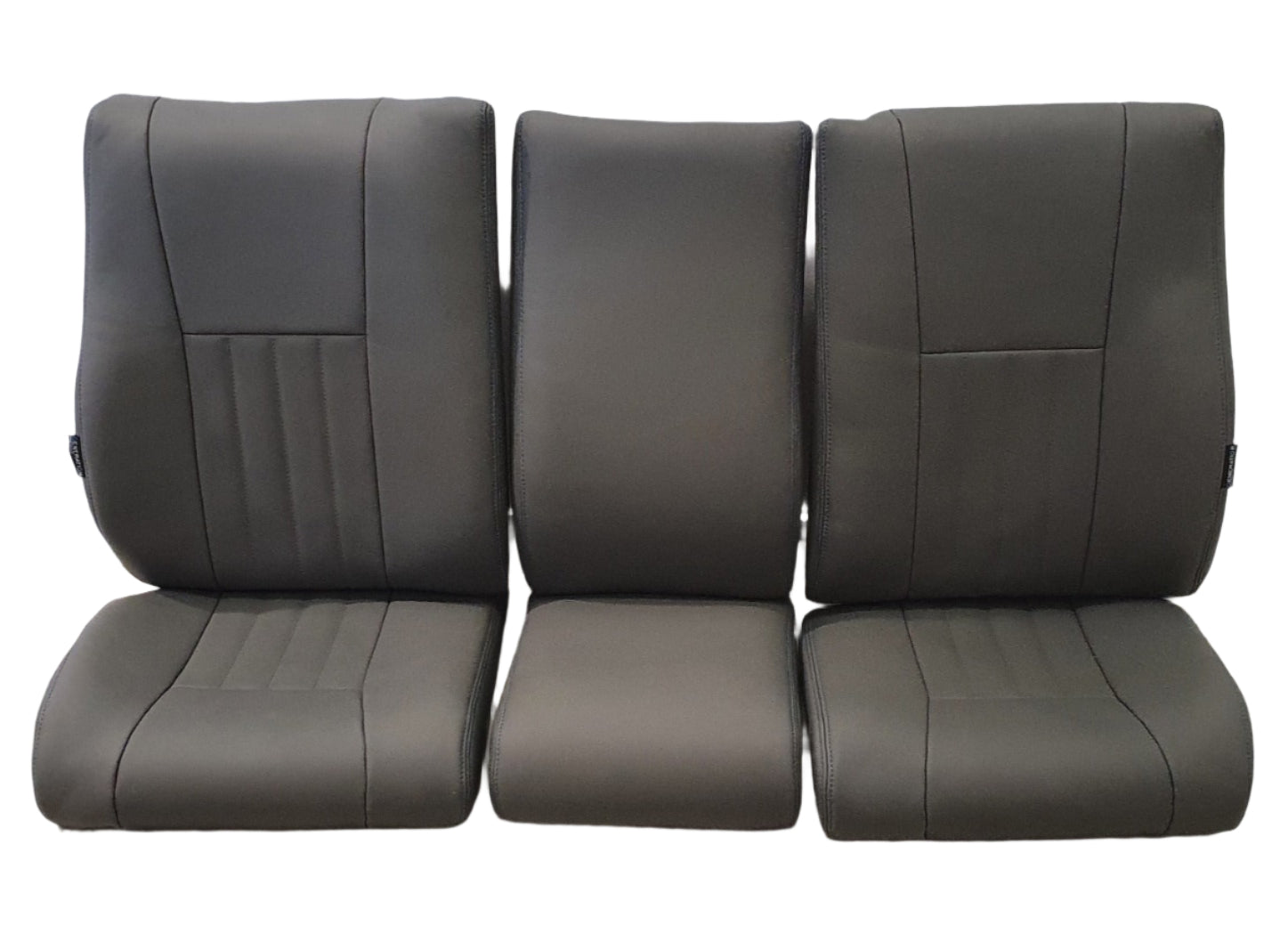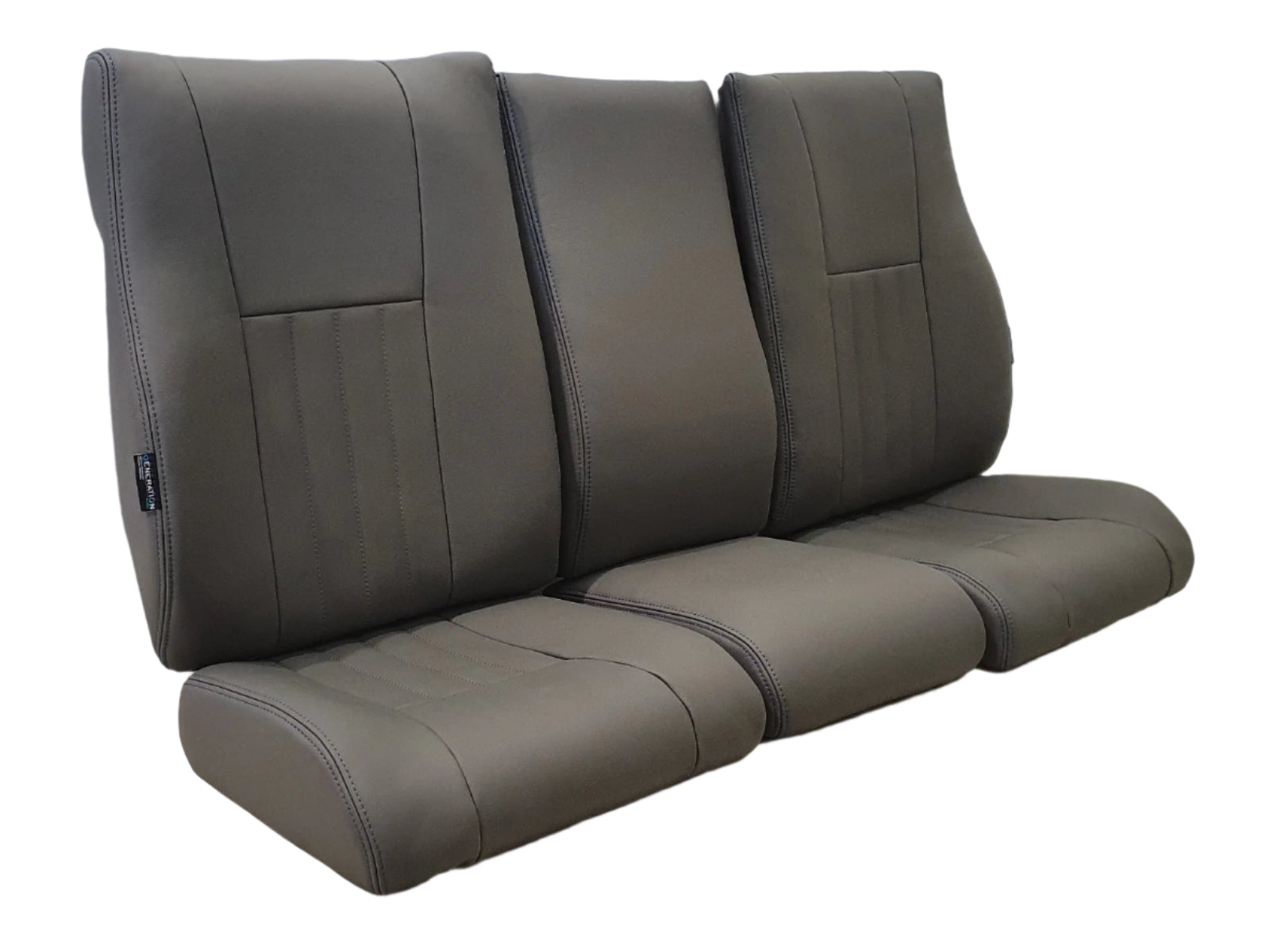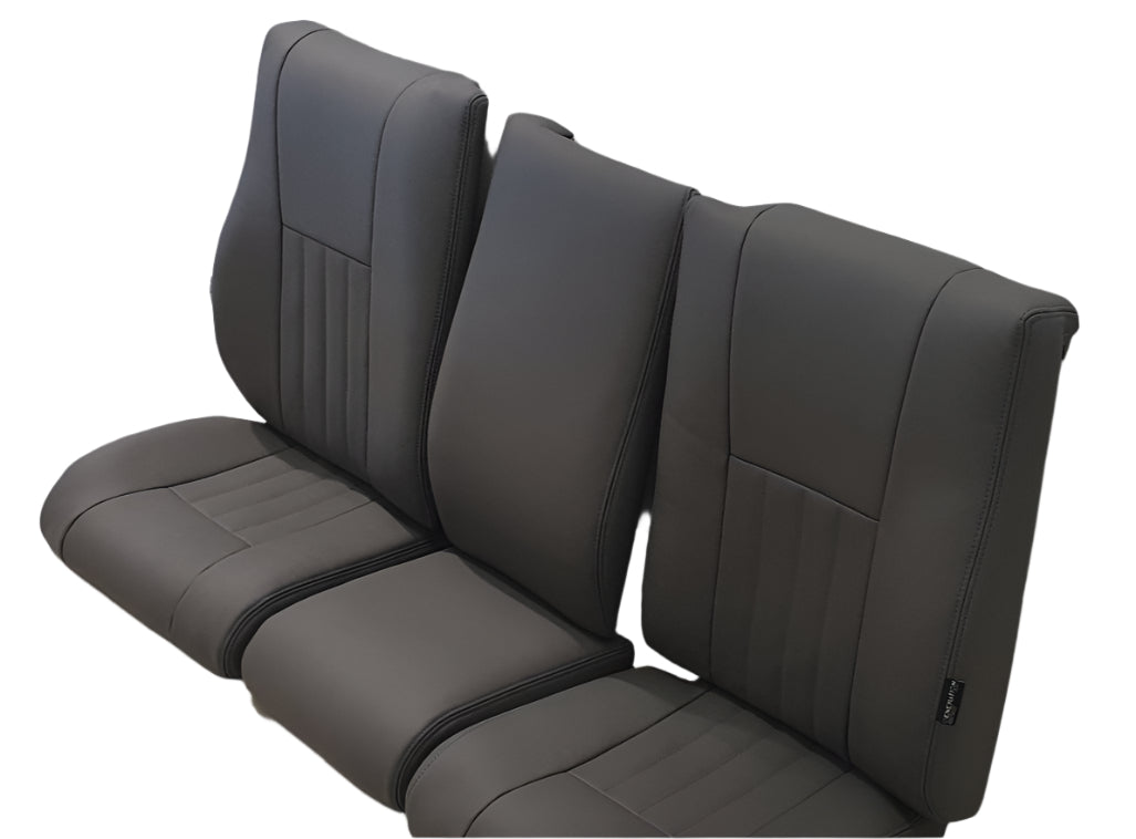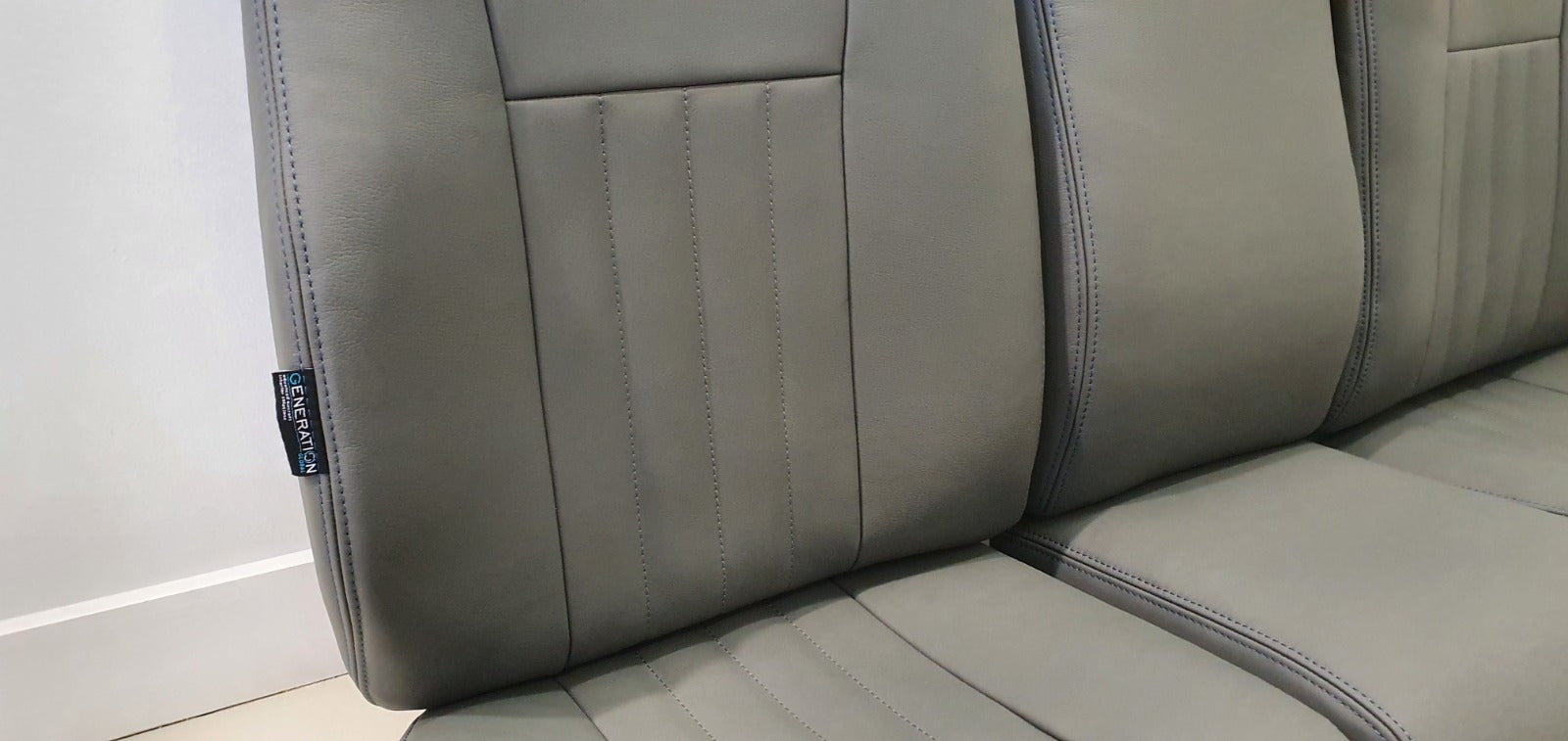 The seat assembly includes essential components such as backing panels, foam cushions, and leather dress covers. The backrest panels are made from composite material and are specially molded to fit the aircraft bulkhead shaping, ensuring a seamless and secure fit. The cushions are crafted from durable Genlite foam, offering a balance of comfort and support. -