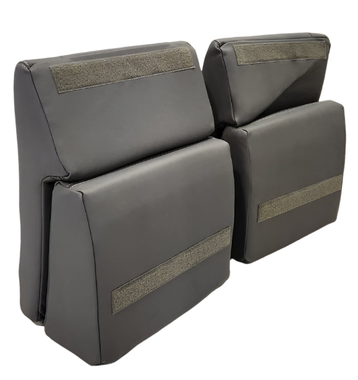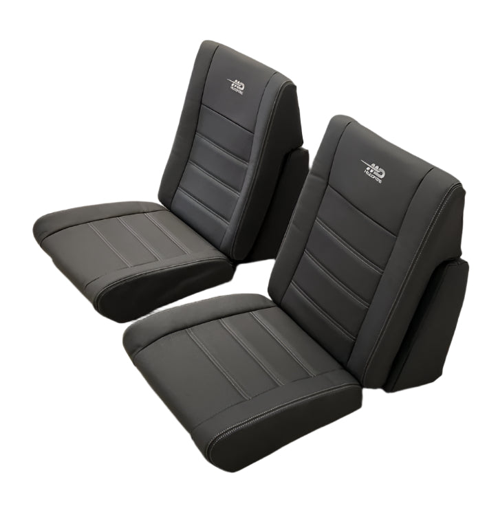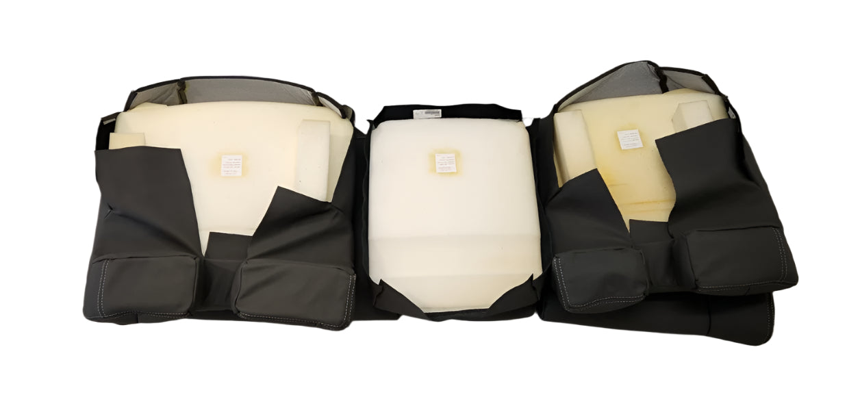 The seating in the forward cabin is the Generation I design, which includes three seats: the pilot, co-pilot, and the dickie seat in between. The seat covers and cushions are provided as a kit and are designed to be fitted to the OEM seat shells. The existing covers and cushions must be stripped from the shells, and the new upholstery can then be installed. -
