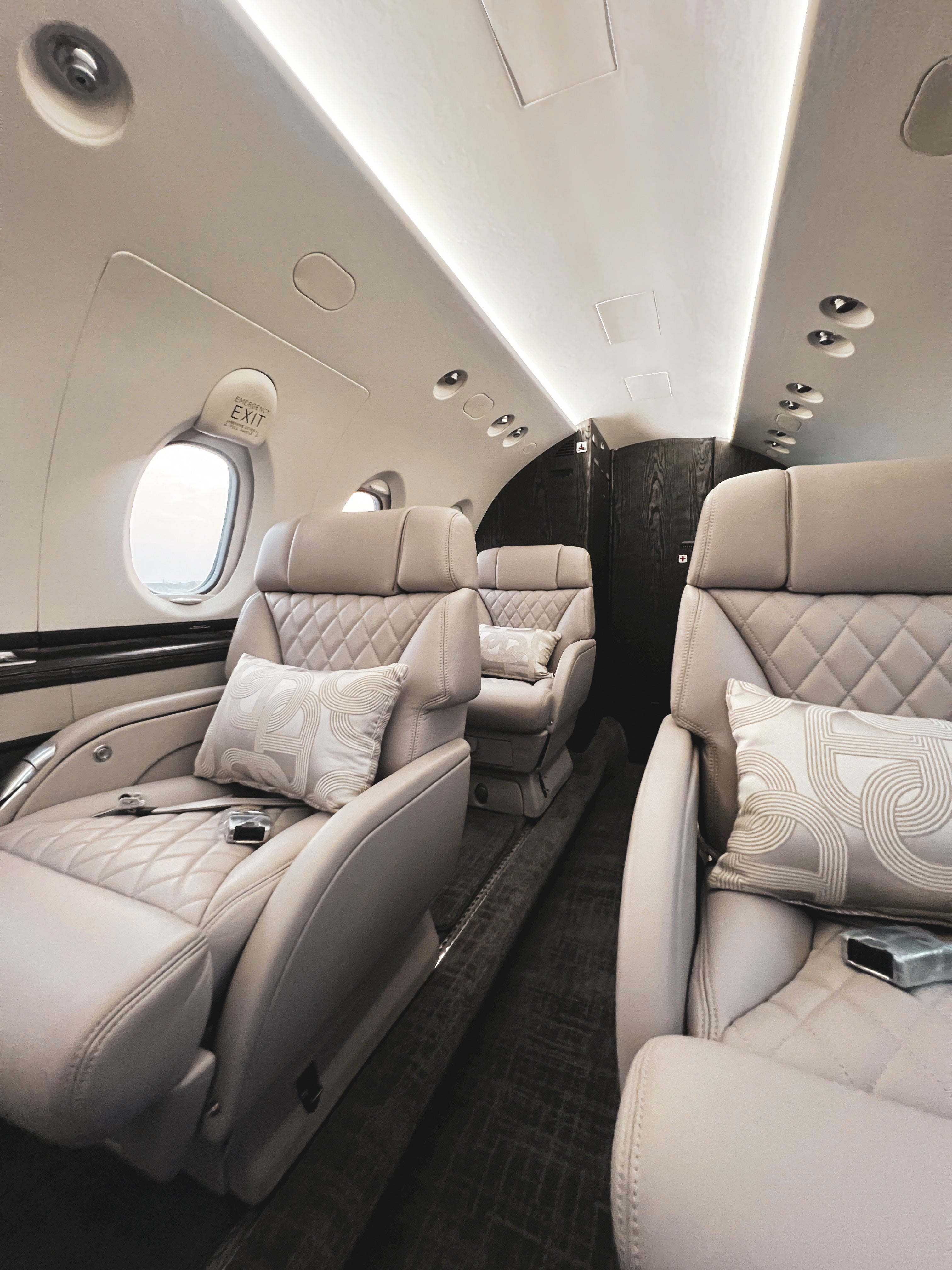The seats were redesigned with warm grey upholstery and enhanced with diamond quilted center inserts, creating a refined look and feel. These upgrades provide an exceptional balance of comfort and style, adding both luxury and visual interest to the aircraft’s interior.