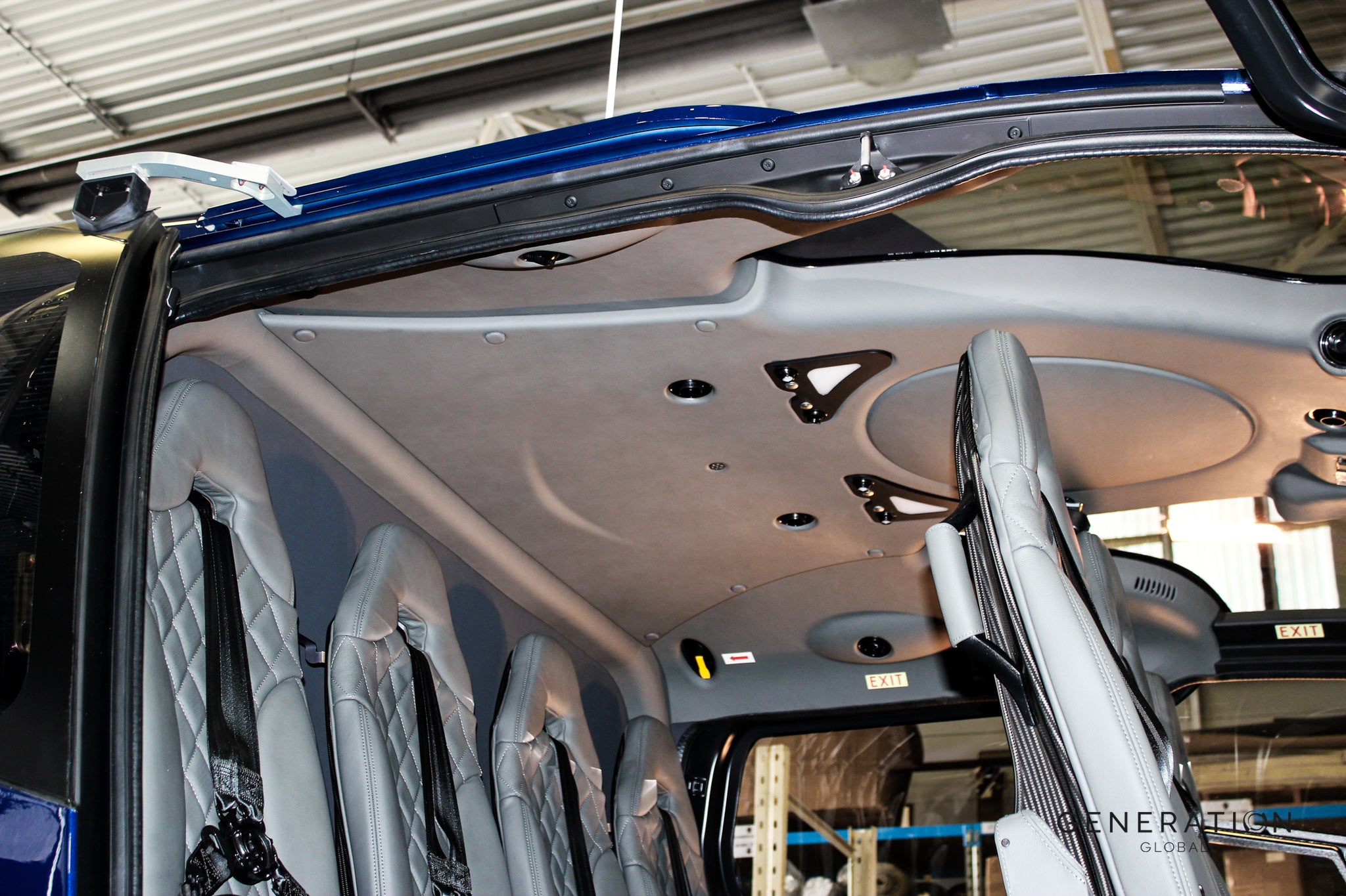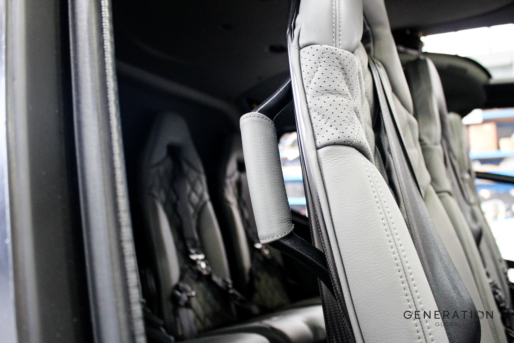 Our team worked at speed to deliver a bespoke interior upgrade, featuring Grey leather seats with elegant diamond quilting for ultimate comfort and sophistication. We also refurbished the headlining, sidewalls, and flooring, transforming the cabin.Β The result? A stunning, luxurious, and comfortable interior that speaks to the exceptional craftsmanship Generation Global is known for.