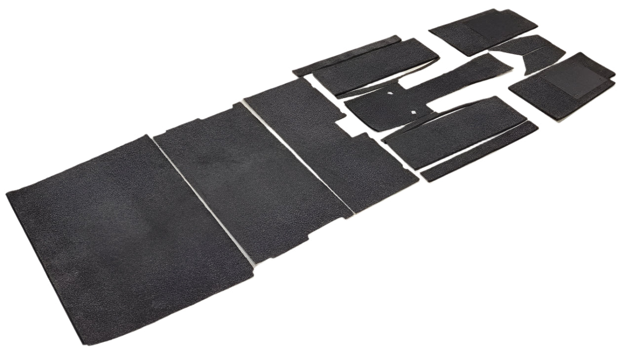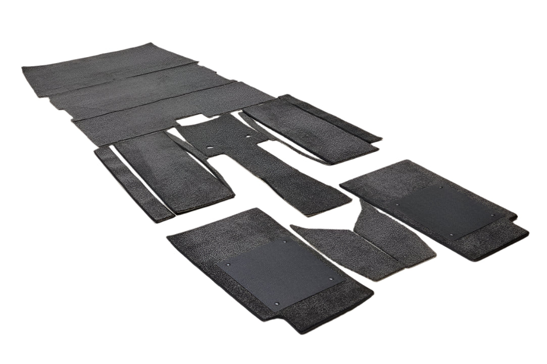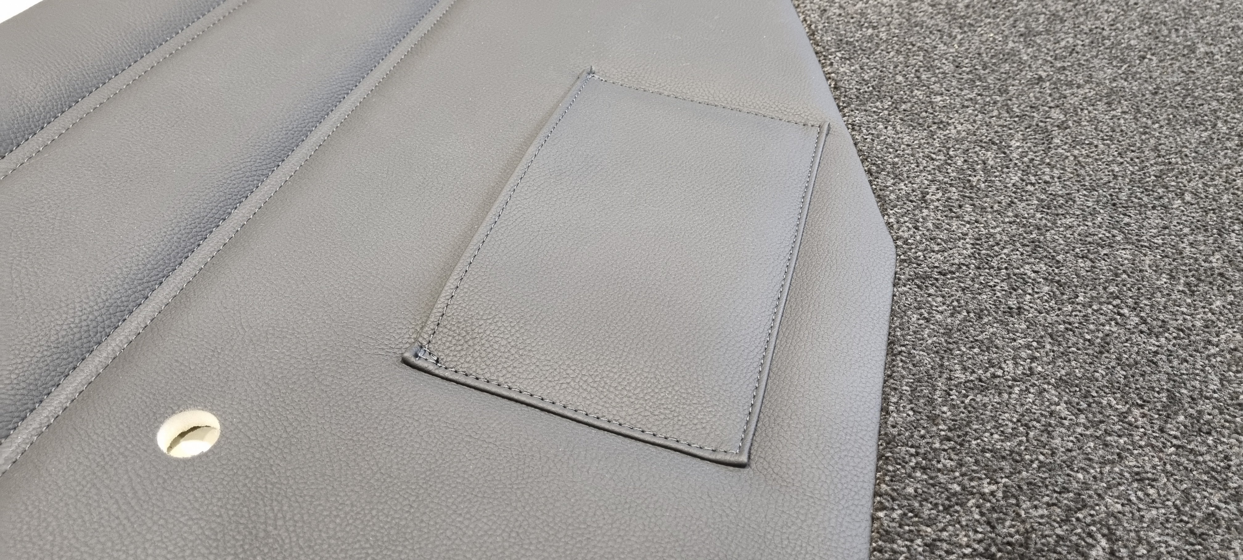 Crafted from plush cut pile Ash grey aviation carpet, the floor coverings were laser-cut using CNC technology. This process ensures:-
