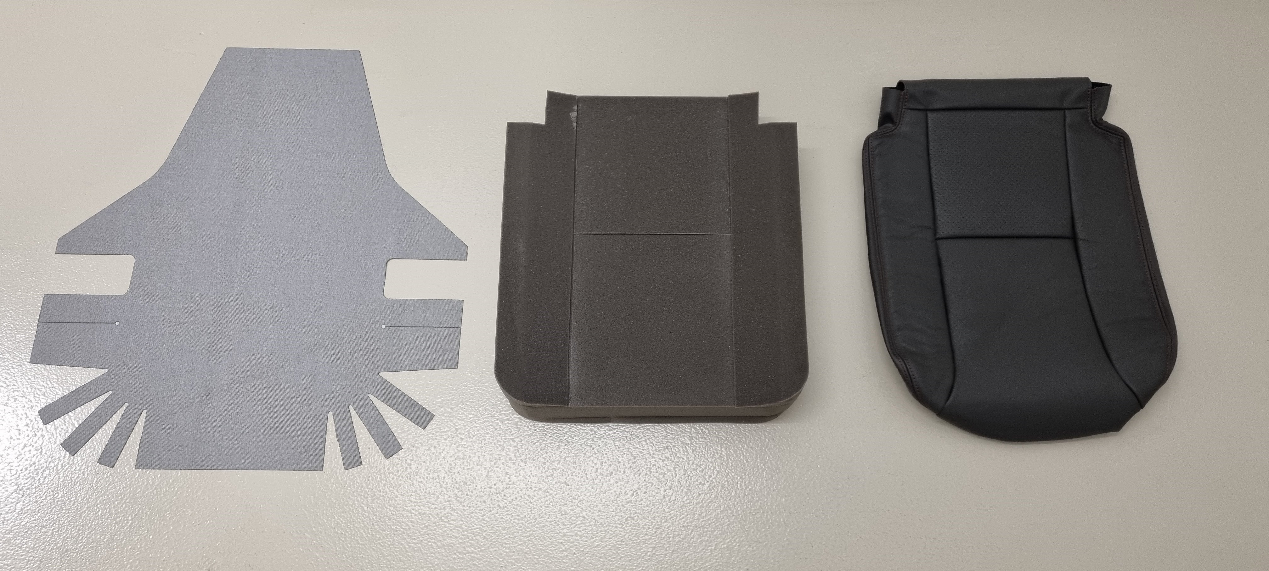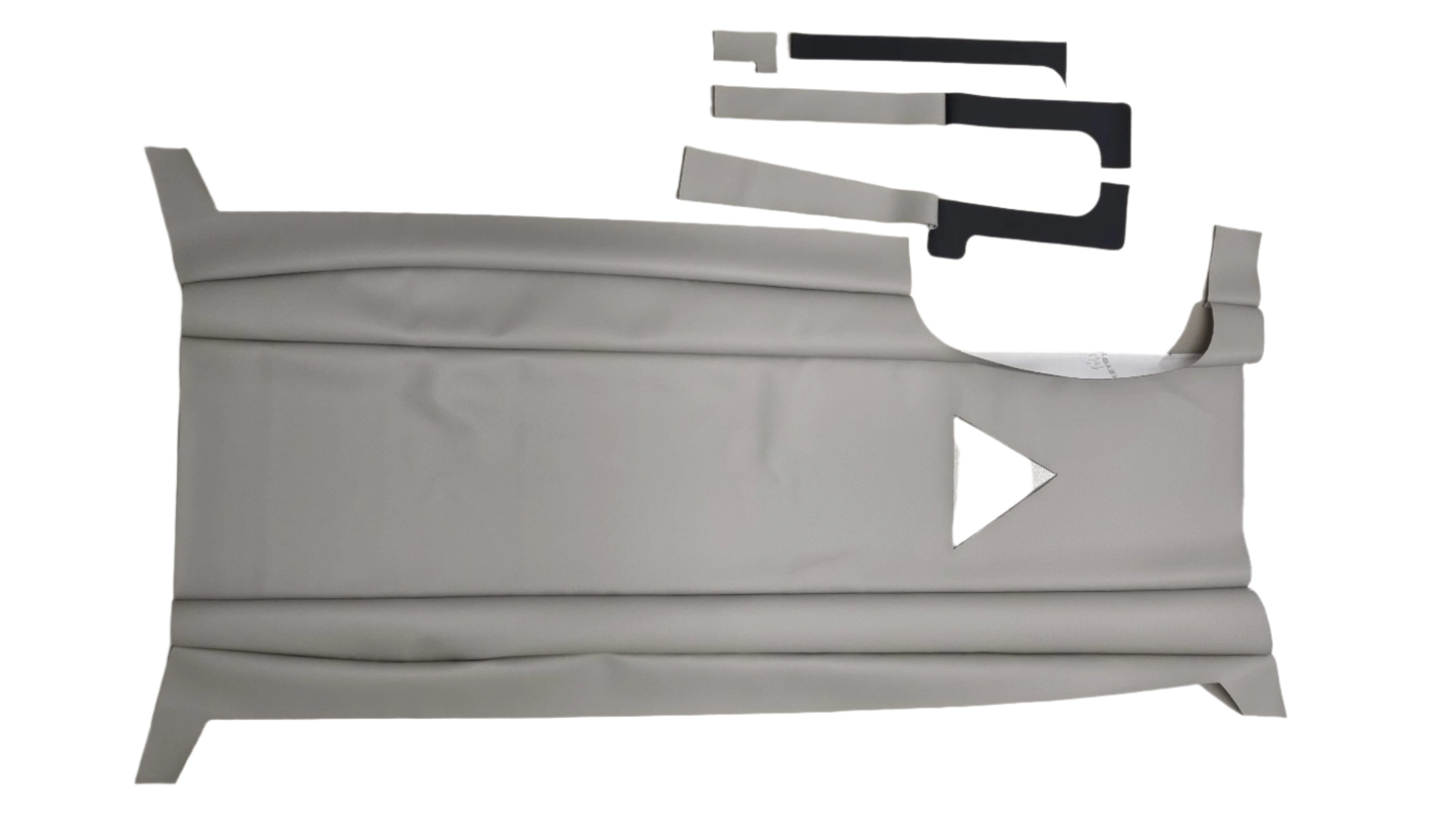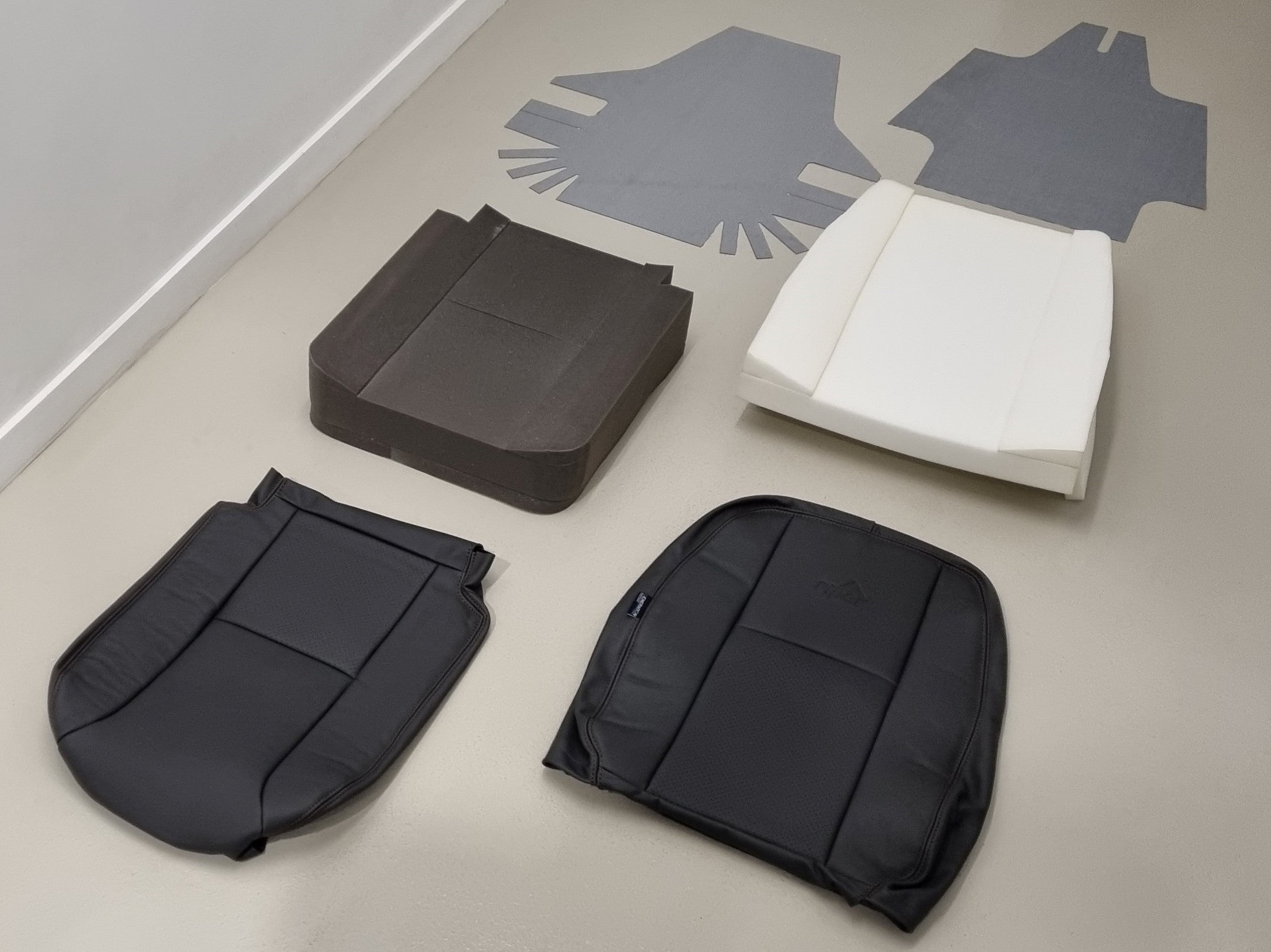 The suspended headlining was manufactured from Geneva Light Grey (HL-110) synthetic leather, selected for its smooth grain and soft visual tone. Longitudinal seams provided a structured look, and once again, CNC cutting ensured a perfect fit.