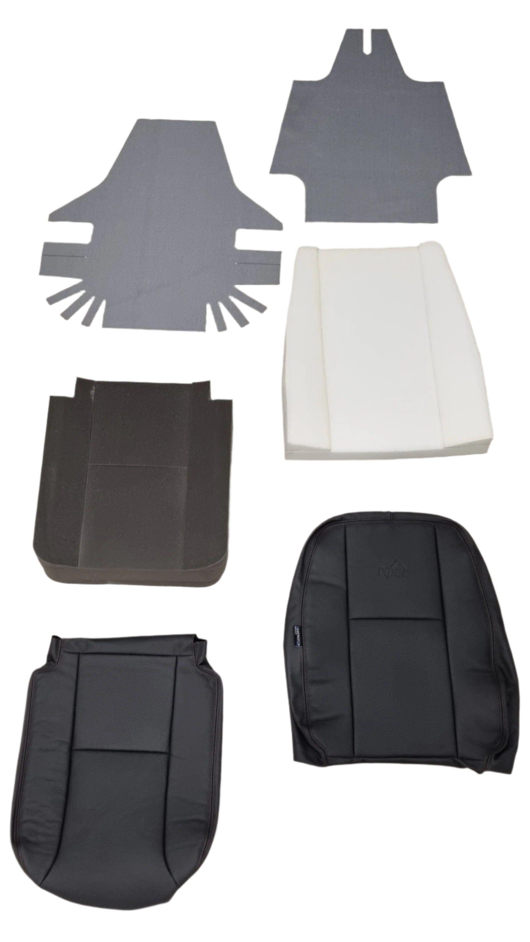 Matching mesh binding finished the edges, and protective mats were added around high-wear areas, such as the foot controls.